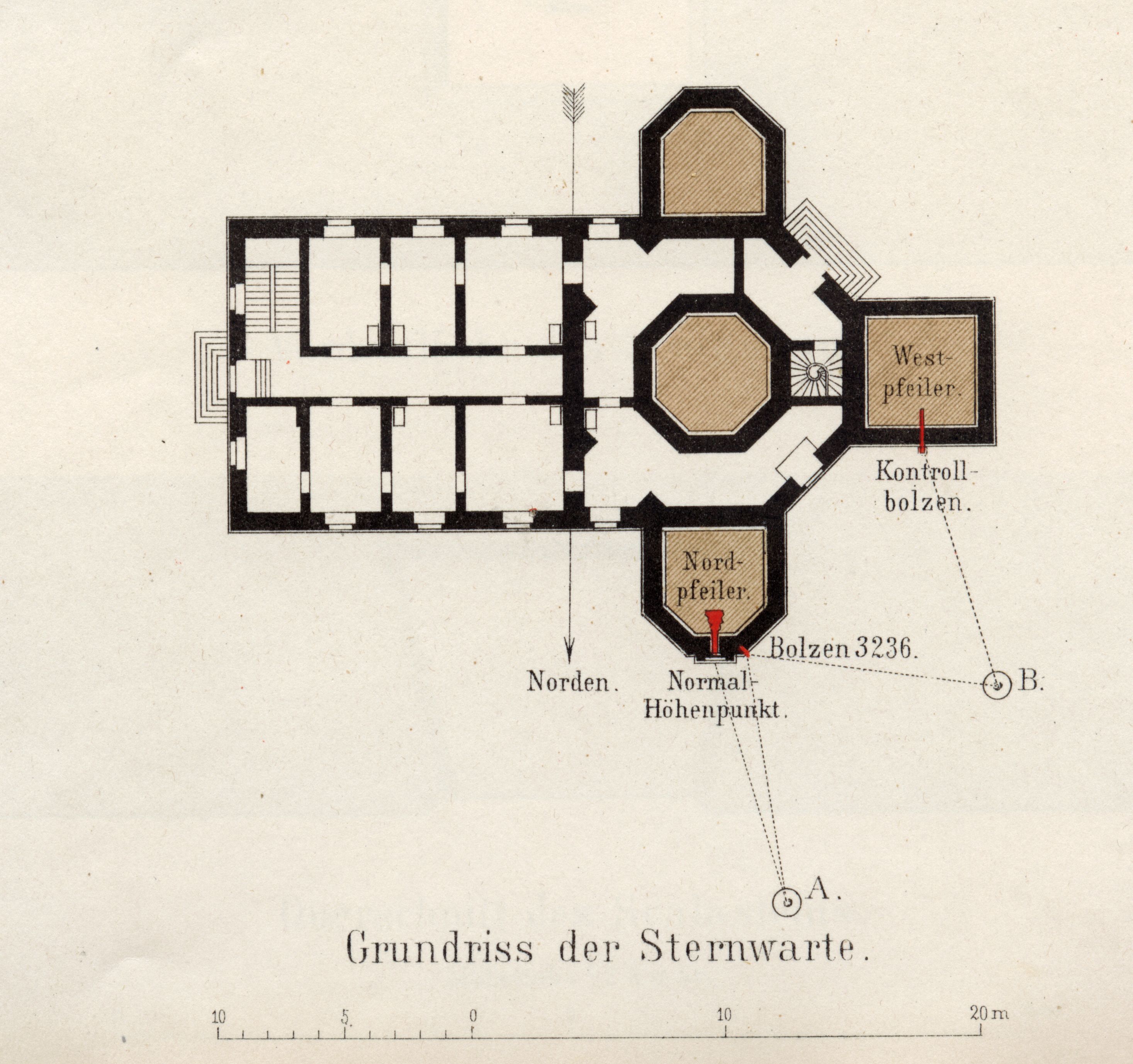 천문대 북쪽 건물에는 프로이센의 높이 기준점인 정상해면이 있었다. 이 표시는 1879년 3월 22일 빌헬름 1세의 82번째 생일에 공식 발표되었으며, 암스테르담 조위 기준에서 파생되어 37m 지점에 표시되었다.[28]