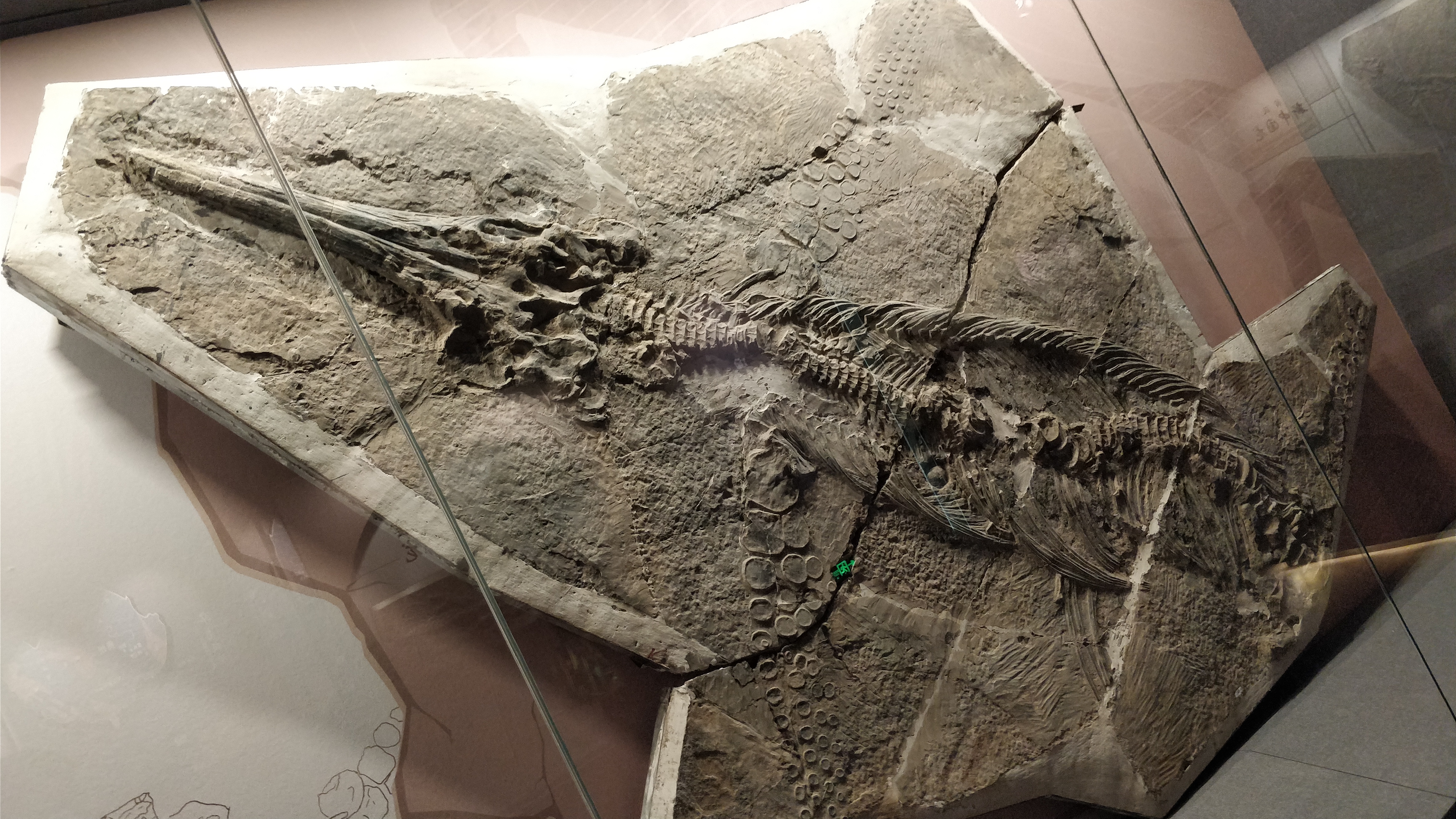 이 거대한 어룡 골격은 밀라노 자연사 박물관에 기증되어 표본 번호 BES SC 999가 부여되었다.[1] 박물관은 골격의 범위를 파악하기 위해 X선 분석을 사용하여 슬래브를 스캔했다. 각 방사선 사진은 35cm x 45cm 크기의 영역을 덮었고, 전체 표본을 확인하는 데 145개가 필요했으며, 최종적으로 총 33개의 슬래브에 걸쳐 있는 것으로 나타났다.[1][2] 슬래브의 두께는 약 2.7cm에 불과하지만, 합치면 약 3.5m x 4m의 면적을 덮는다. 골격은 두개골을 제외하고 위에서 아래로 눌려 있으며, 두개골은 좌우로 눌려 두께가 1cm 미만이 되었다. 골격 대부분은 분리되지 않았지만 손가락 뼈는 흩어져 있었다. 슬래브에는 거대한 어룡 외에 작은 믹소사우루스도 포함되어 있다.[1]