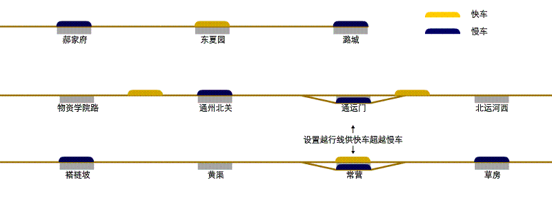 평일 러시아워에는 급행 열차도 운행되고 있다. 일반 열차 추월은 기본적으로 창잉 역에서 실시하지만, 평일 아침 루청 역 방면으로 가는 일부 열차만 미개통된 퉁윈먼 역에서도 일반 열차를 추월한다(일반 열차는 운전 정차한다).[8]3. 2. 기술
