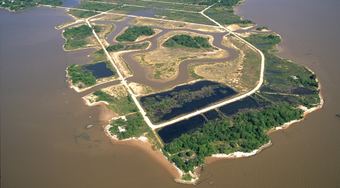 이 지역의 평탄한 지형과 만과의 근접성은 이 지역에 홍수가 반복적으로 발생하는 문제의 원인이 되었다.[12] 베이타운과 주변 지역 사회는 한때 생활에 필요한 물을 지하수에 의존했지만, 심각한 지반 침강으로 인해 도시의 많은 부분이 지표수 수원으로 전환해야 했다.[13]