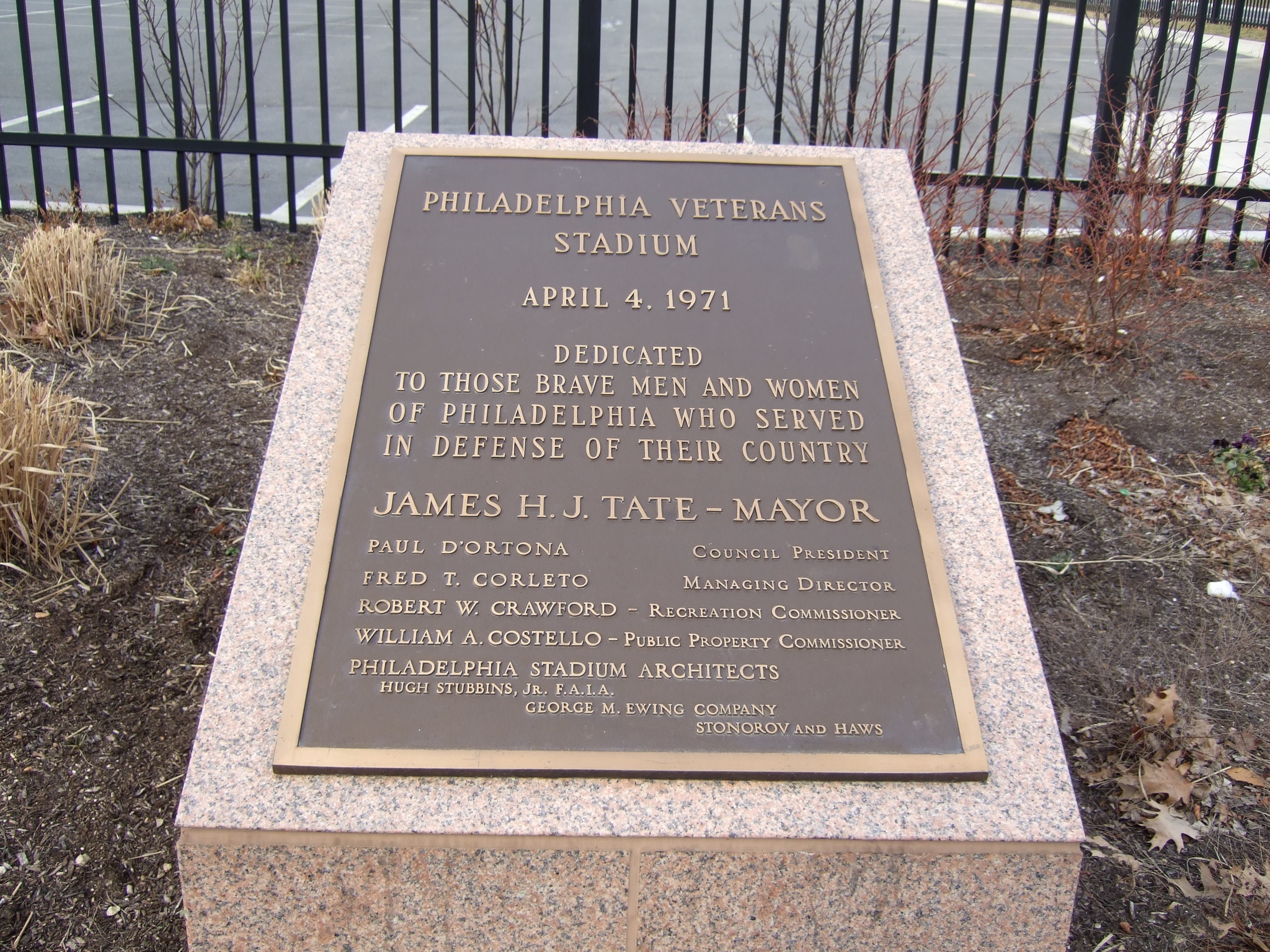 1968년 필라델피아 시의회는 이 경기장을 재향 군인을 기리는 의미에서 베테런스 스타디움(Veterans Stadium)으로 명명했다.[5] 이는 미국 건국의 땅 필라델피아의 구장 이름에 걸맞게 재향 군인(Veteran)에서 따온 것이다.
