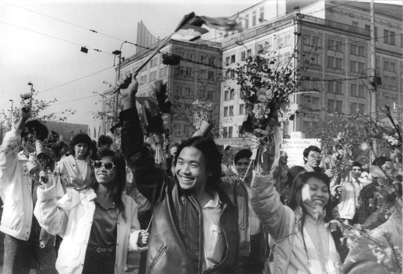 베트남 출신 계약 노동자들은 한 달에 대략 400M의 임금을 받았는데, 이 중 12%는 베트남 정부에 지불되었고, 인플레이션으로 인해 현금 대신 재봉틀, 자전거, 옷, 설탕, 비누 등 소비재로 일부가 지불되었다. 주류 사회와의 관계에서 동독의 베트남 출신 계약 노동자들은 서독의 보트피플과는 달랐는데, 그들은 망명자가 아닌 출신 국가의 시민이었으며, 사회주의 형제애라는 공식적인 수사에도 불구하고 동독 시민과의 개인적인 관계를 발전시키는 것이 금지되었다.[16] 그들은 공식적으로 통합이 차단되었는데, 그들의 삶의 모든 영역은 정부 규정에 의해 규제되었으며, 베트남 여성 노동자들의 임신은 강제 낙태로 처벌받았다.[17] 그들은 때때로 외국인 혐오 폭력의 대상이 되었으며, 신체적 안전이 유지될 때조차 소비재에 대한 우선적인 접근으로 인해 불만을 사게 되었다.[15] 사회주의적 세뇌에도 불구하고, 많은 사람들이 원자재와 베트남으로 보내진 재봉틀을 이용하여 돌 워싱 청바지와 같은 유행하는 옷을 사적으로 생산하여 이웃에게 판매함으로써 가족이 자본가가 되고 더 나아지도록 도왔다.[14]2. 3. 통일 이후