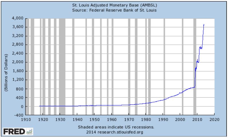 2013년 12월 18일, 버냉키는 QE3(양적완화 3)의 월별 채권 매입 규모를 처음으로 100억달러 축소하여 750억달러로 조정했다.[127]