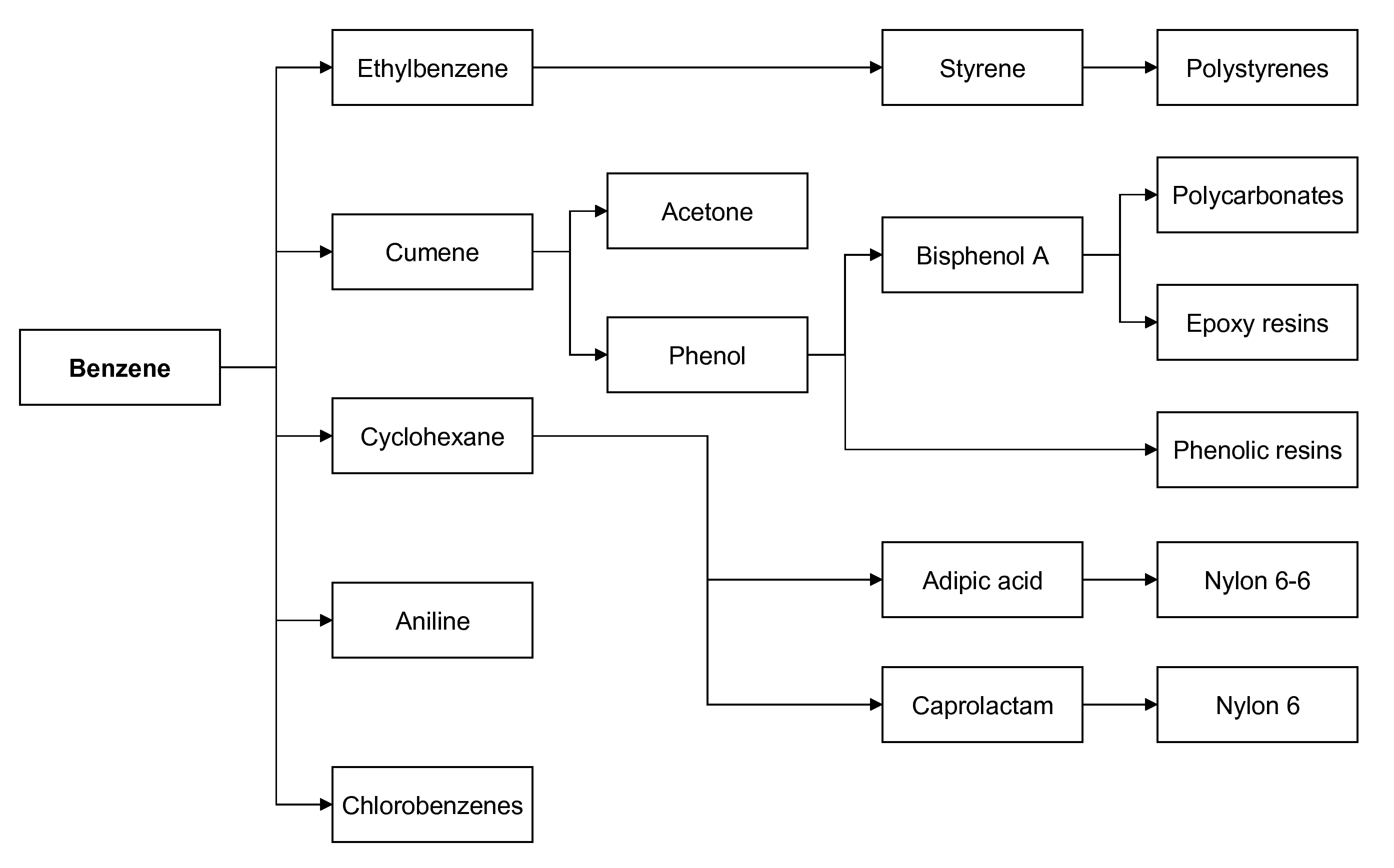 벤젠은 화학식 C6H6를 갖는 무색의 인화성 액체로, 독특한 향기를 지니며, 주로 다른 화학 물질의 생산에 사용되는 중요한 유기 화합물이다. 1825년 마이클 패러데이에 의해 처음 발견되었으며, 1865년 프리드리히 아우구스트 케쿨레가 제안한 육각형 고리 구조를 갖는다. 벤젠은 다양한 화학 반응에 참여하며, 특히 친전자성 방향족 치환 반응이 일반적이다. 벤젠은 스티렌, 페놀, 시클로헥산 등 다양한 화학 물질의 생산에 사용되며, 과거에는 용매 및 휘발유 첨가제로도 사용되었으나, 현재는 발암 물질로 분류되어 사용이 제한된다. 벤젠은 1급 발암 물질로, 백혈병을 포함한 여러 질병의 위험을 증가시키며, 작업장 및 환경에서의 노출을 엄격하게 규제하고 있다.