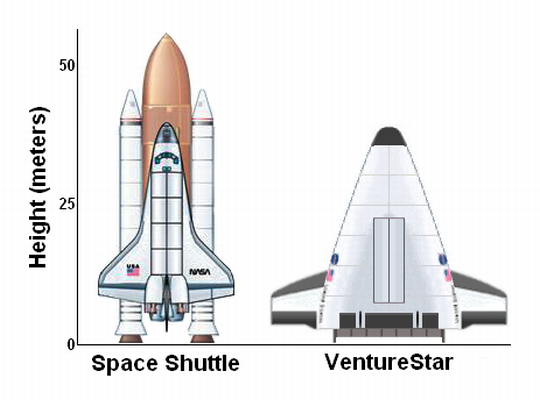 또한, 우주왕복선은 발사 후 바다에서 회수하여 수리해야 하는 고체 로켓 부스터에 의존했지만, 벤처스타는 이러한 부스터가 필요 없었다.[4] 설계 사양에는 모든 고도에서 추력 효율을 유지하는 선형 에어로스파이크 엔진 사용이 포함되었는데, 이는 특정 고도에서만 최대 효율을 내는 기존 노즐 엔진을 사용한 셔틀과 대조적이다.[4]