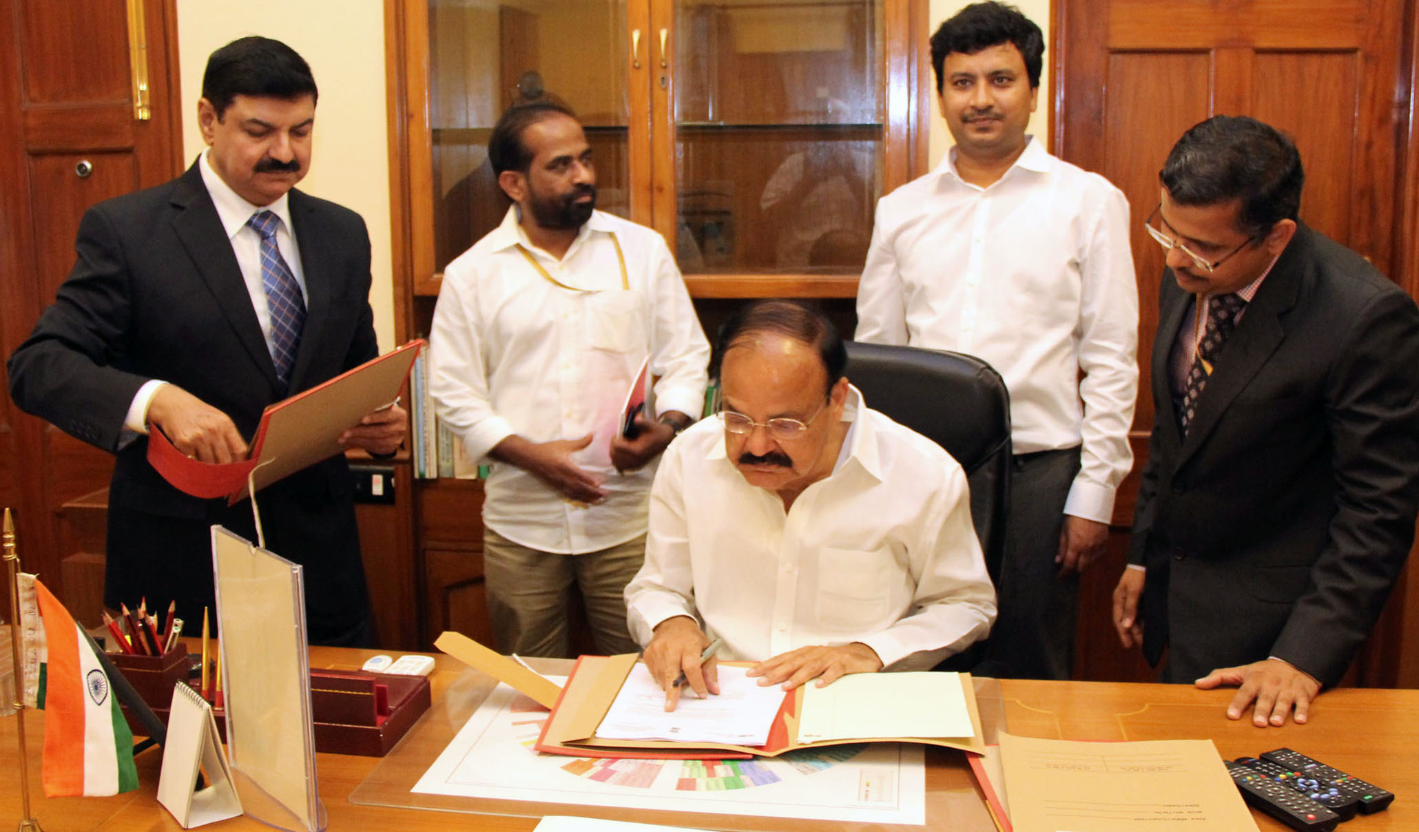 2014년 총선에서 BJP이 승리한 후, 나이두는 2014년 5월 26일 도시 개발, 주택 및 도시 빈곤 완화, 의회 담당 장관으로 취임했다.[29] 2016년부터 2017년까지 정보 방송부 장관직을 겸임했다.