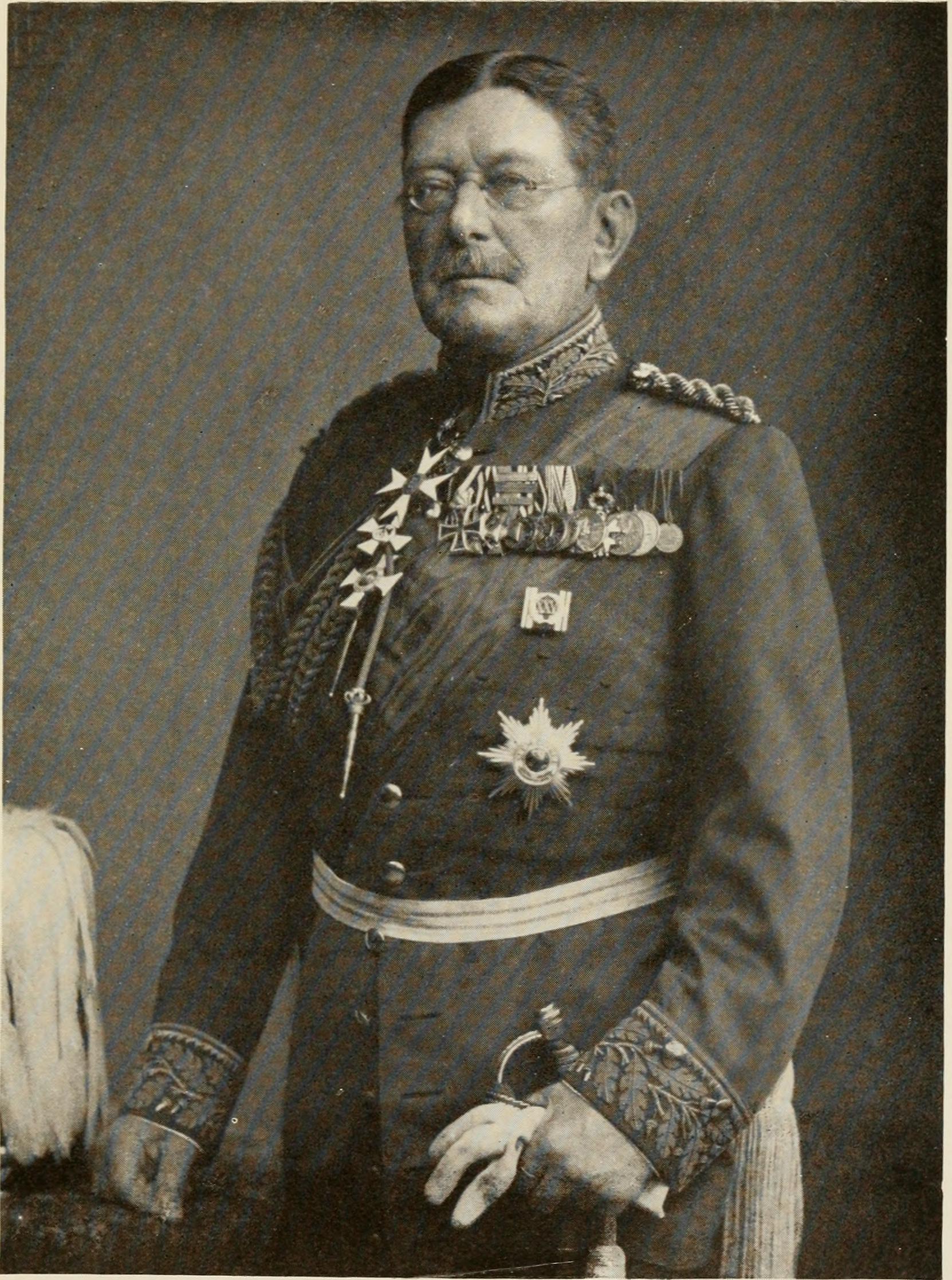 1 | ![]() | 프라이헤르 콜마어 폰 데어 골츠 파샤 | 1914년 8월 ~ 1914년 11월 | 초기 점령군의 수장으로서 그는 벨기에 저항을 신속하게 진압하려 했다. 사용된 전쟁 범죄와 처벌 방식은 연합군 선전에서 집합적으로 "벨기에 강간"이라고 불렸다. 이러한 행동은 1941년 아돌프 히틀러에 의해 칭찬받았다.[4] 짧은 임기 후 그는 오스만 전선으로 재배치되었다. |