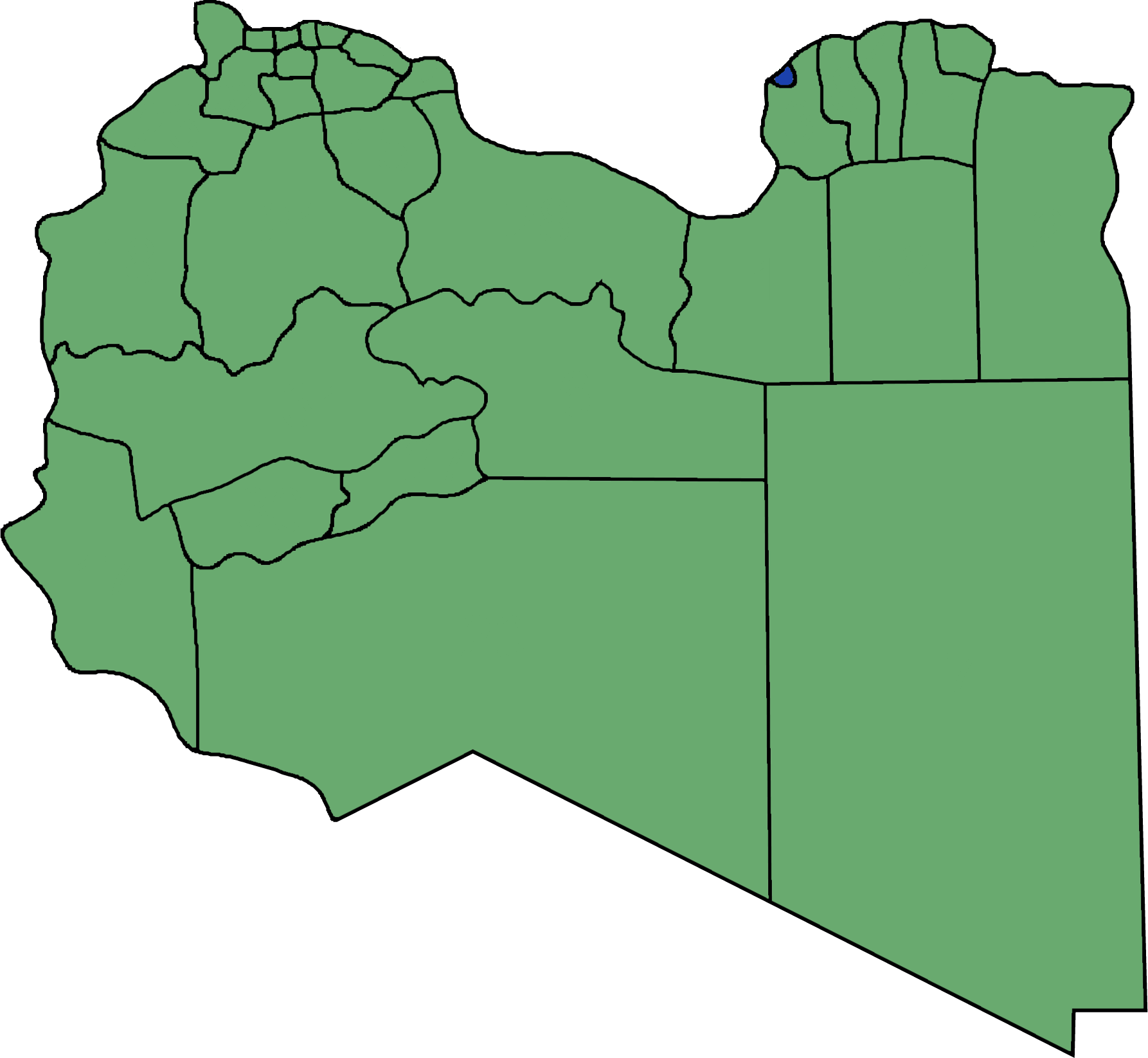 리비아 북동부의 항구 도시 투브루크는 깊은 항구로 인해 전략적 요충지로서 고대에는 식민 도시, 로마 시대에는 방어 요새로 기능했으며, 제2차 세계 대전 중에는 격전지, 리비아 내전 이후에는 정부 소재지로 기능했다. - 리비아의 주 - 데르나주