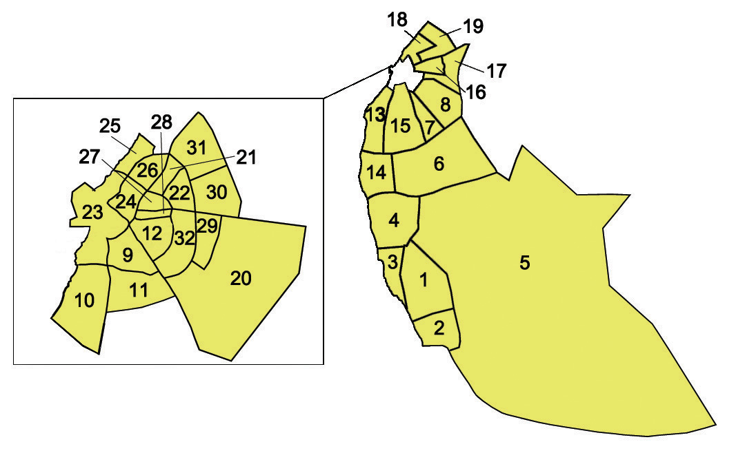 구로서 벵가지는 내륙의 히잠 알 아크다르 구와 경계를 맞대고 있다.