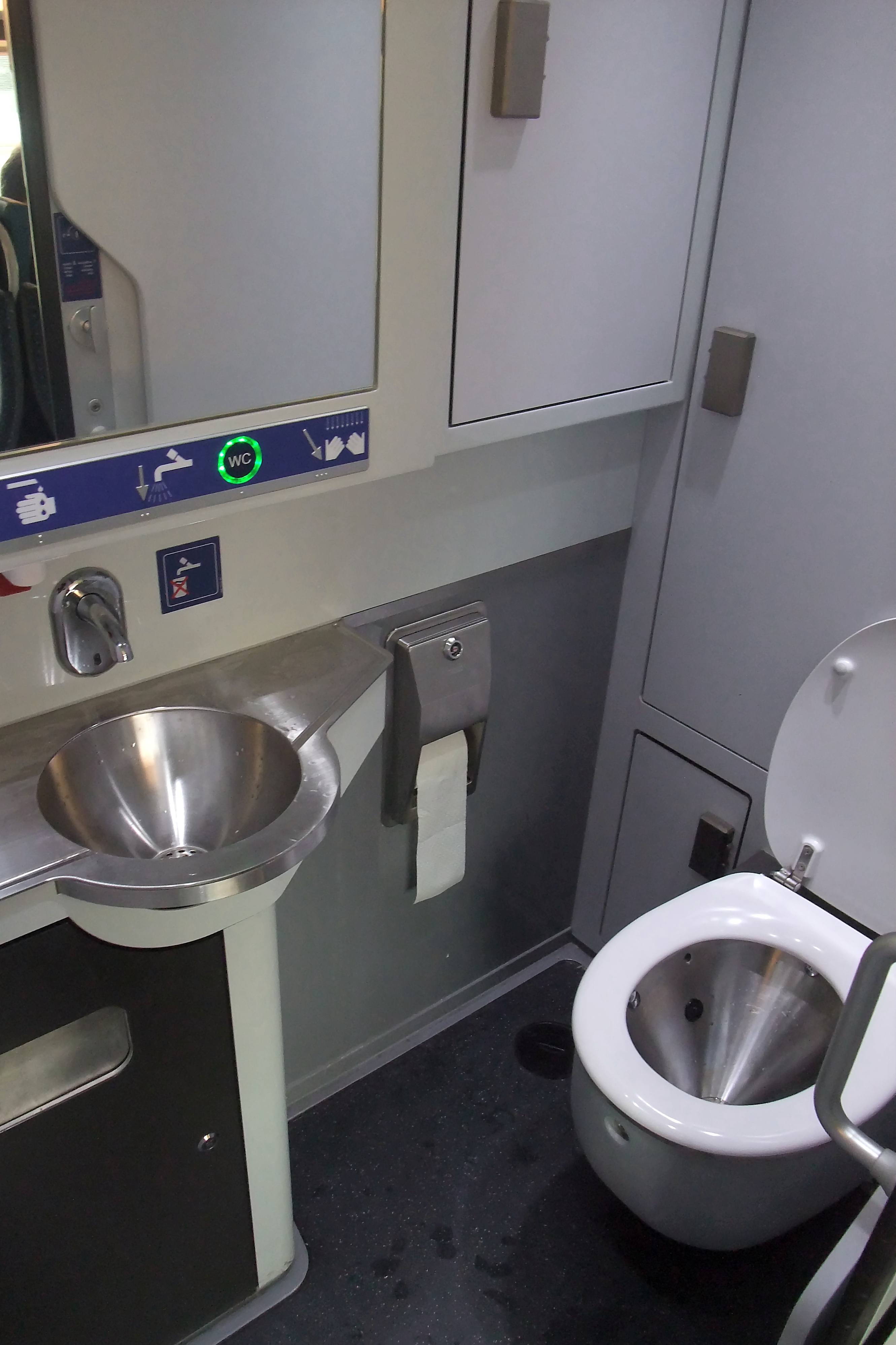 もともとは一般家庭用と同じく陶製であったが、黄害対策として循環式に改造するに当たり、洗口が流し水で詰まらぬようステンレス製に移行した。