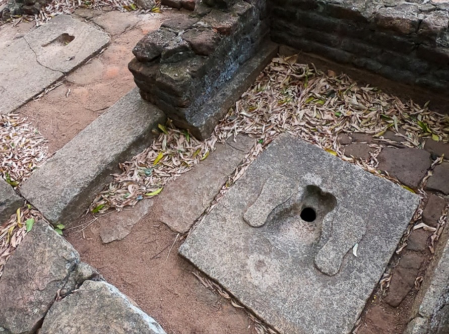 스리랑카에서는 화장실과 세면대 건설 기술이 여러 단계에 걸쳐 발전했다. 아누라다푸라의 아바야기리 비하라(Abhayagiri Vihāra) 단지(기원전 2세기~서기 3세기)와 폴로나루와 및 아누라다푸라(5세기~13세기)의 후기 화장실은 화려한 장식 모티브가 조각되어 있다.[46][47][48] 링웰 피트가 있는 세면대, 정화조로 이어지는 지하 테라코타 파이프, 바닥이 없는 큰 점토 항아리를 서로 위에 놓아 크기를 줄인 소변기 피트 등 여러 유형의 화장실이 개발되었다. 소변기 아래 항아리에는 "모래, 석회, 숯"이 들어 있어 소변이 정화된 형태로 땅으로 여과되었다.[46]