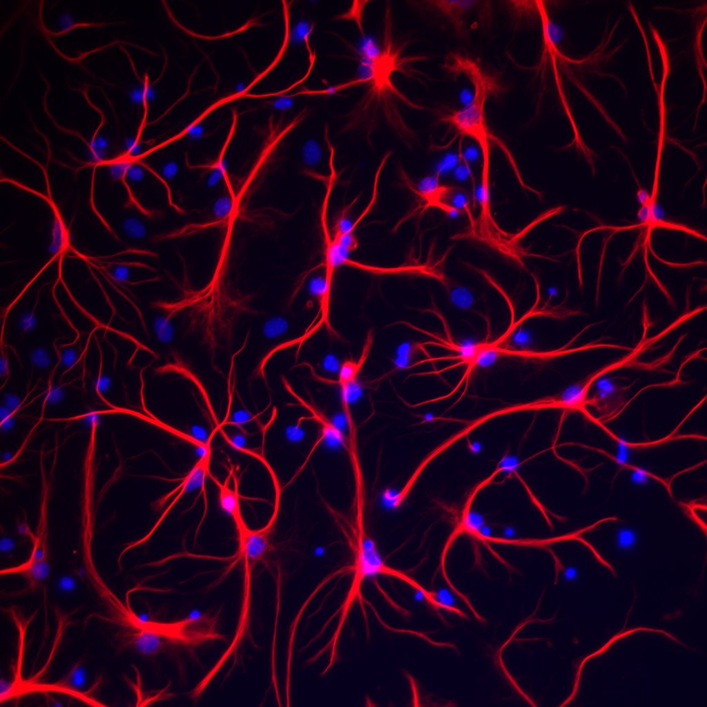 - 구조적 기능: 별아교세포는 별 모양으로 뇌에서 가장 풍부한 신경교 세포이며, 뉴런 시냅스와 밀접하게 관련되어 뇌 내 전기적 신호 전달을 조절한다.