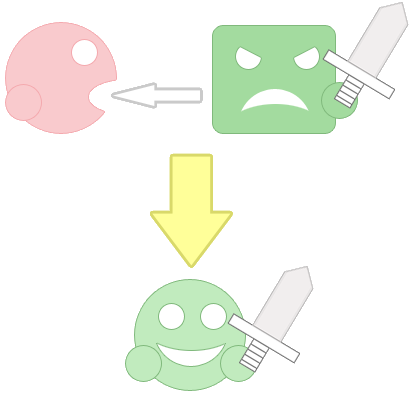 하지만, 제1작에는 카피 능력이 아직 없고, 대신 카레, 고구마 등의 특수 아이템이 있었다.