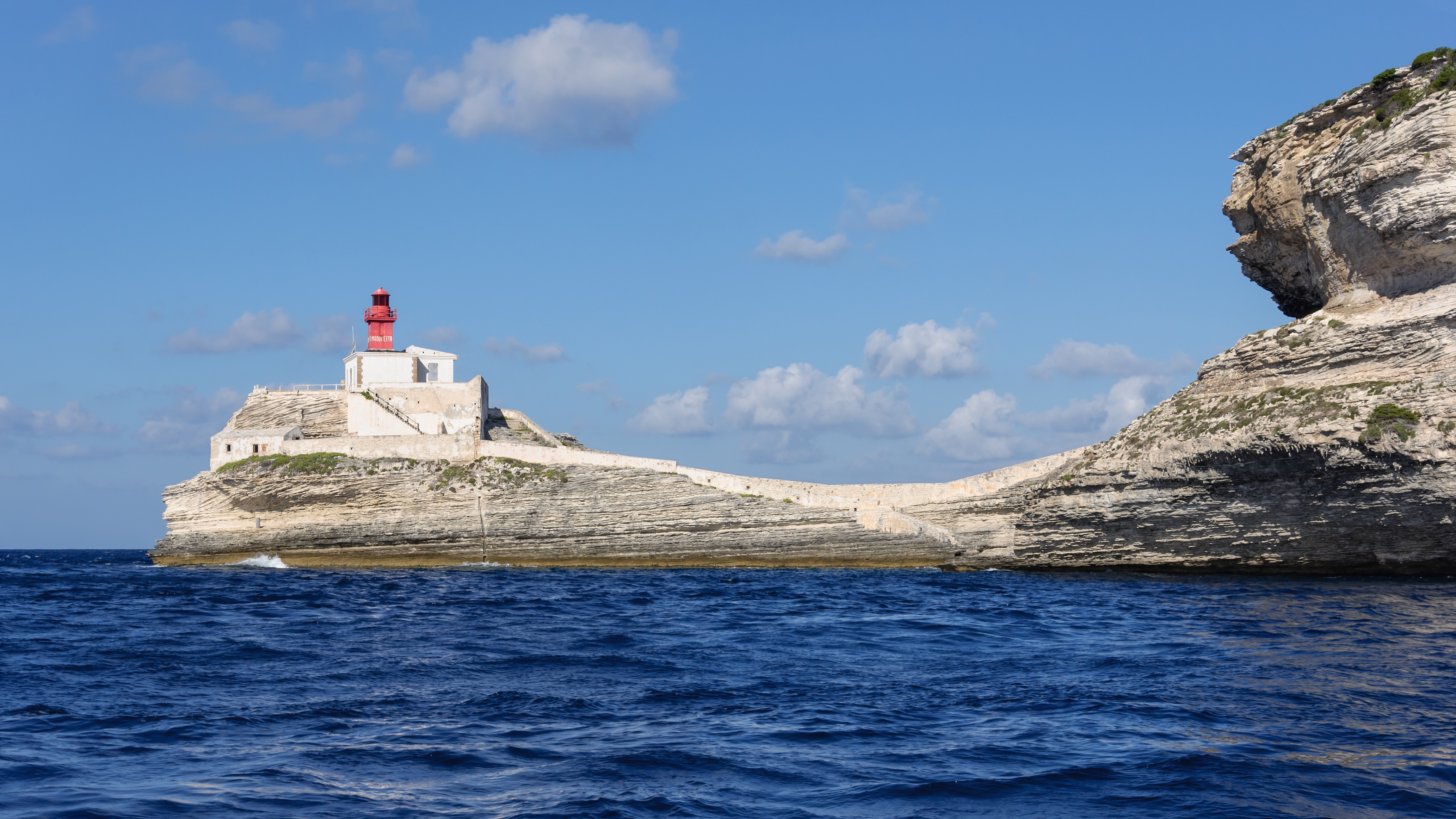 바다 위의 보니파시오. 아라곤 왕의 계단이 절벽 왼쪽에 있다.
