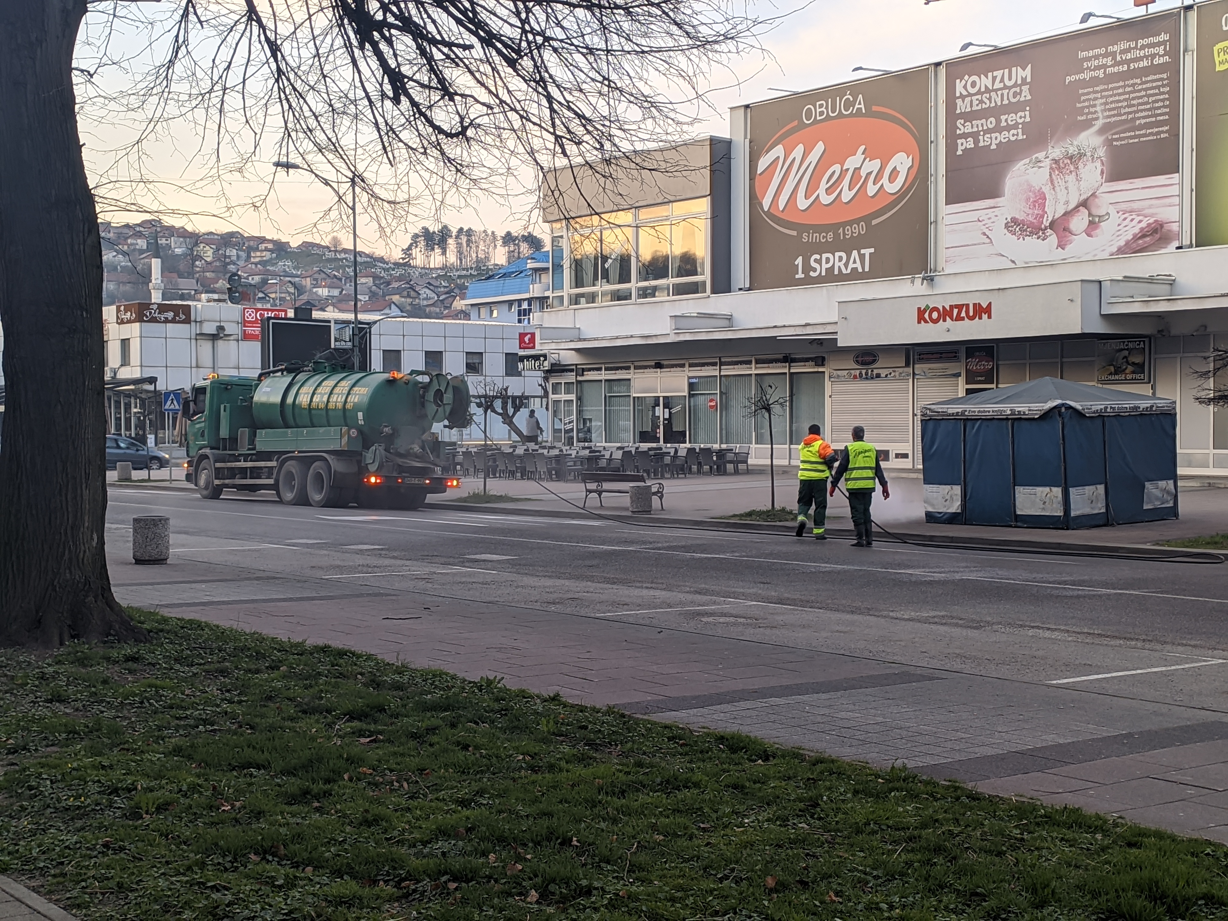 3월 18일, 모든 공공 모임이 금지되고, 음식과 음료의 준비 및 판매를 위한 모든 요식업 시설, 레스토랑, 피자 가게, 제과점, 미용실, 후카 바, 커피 바, 디스코, 찻집, 카페, 개인 치과의사의 운영을 중단하는 명령이 내려졌다.[46][47] 비스코와 같은 일부 도시에서는 거리의 빈번한 야간 소독 외에도 도시에 손 소독제를 설치했다.[48][49] 카진과 그라다차츠와 같은 다른 도시들은 소독 터널을 제작 및 설치했다.[50]