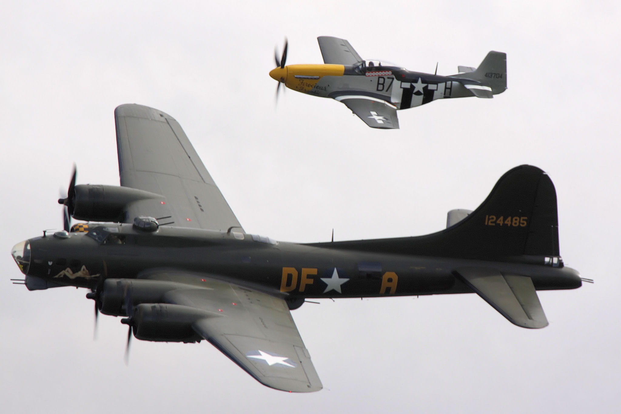 1944년 2월 24일, 빅 위크로 알려진 슈바인푸르트에 대한 세 번째 공습이 있었다.[169] 노스아메리칸 P-51 머스탱과 리퍼블릭 P-47 선더볼트 전투기(사거리 연장을 위해 개선된 드롭 탱크 장착)가 호위하면서 손실률이 7% 미만으로 줄었다.[171] 빅 위크 공습 동안 총 3,500회의 출격에서 247대의 B-17이 손실되었다.[146]