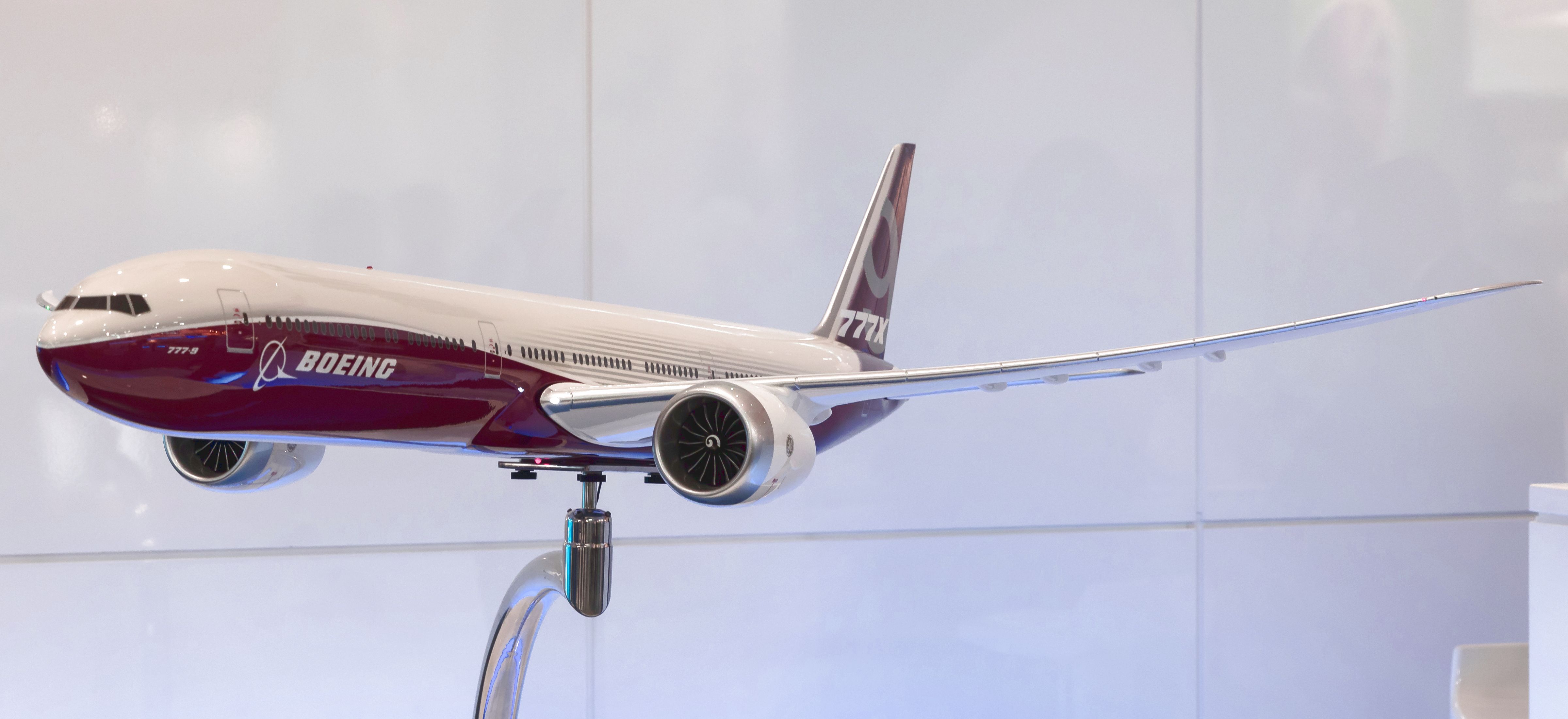 2011년9월, 보잉은 777-8X 및 777-9X로 명명된 777 패밀리의 신형기(777X로 총칭)에 대한 상세 정보를 발표했다.[153] 777-9X는 777-300ER에 비해 수평 미익이 확대되었으며, 전장은 2.13m 연장되어 76.5m가 되었고, 407명의 승객을 수용한다.[143]
