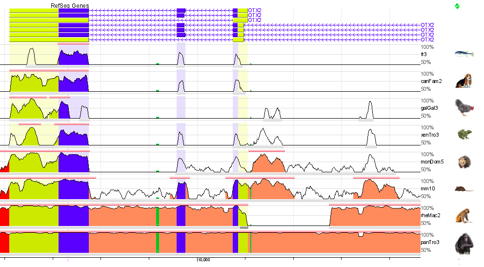 초보존 요소(UCE)는 여러 분류군에 걸쳐 매우 유사하거나 동일한 서열이다. 이는 처음 척추동물에서 발견되었으며,[43] 이후 광범위하게 다른 분류군 내에서도 확인되었다.[44] UCE의 기원과 기능은 잘 알려져 있지 않지만,[45] 양막류,[46] 곤충,[47] 그리고 동물과 식물 사이의 오랜 시간의 분기를 연구하는 데 사용되어 왔다.[48]