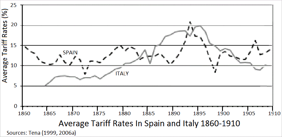 1873년 공황의 영향으로 19세기 후반부터 유럽에서는 농업과 공업에서 보호무역이 강화되었다. 미국의 곡물과 육류 수출, 그리고 러시아의 곡물 수출 증가는 유럽 농업 불황을 야기했다. 이에 따라 각국은 보호무역 정책을 도입하기 시작했다.국가 | 사건 |