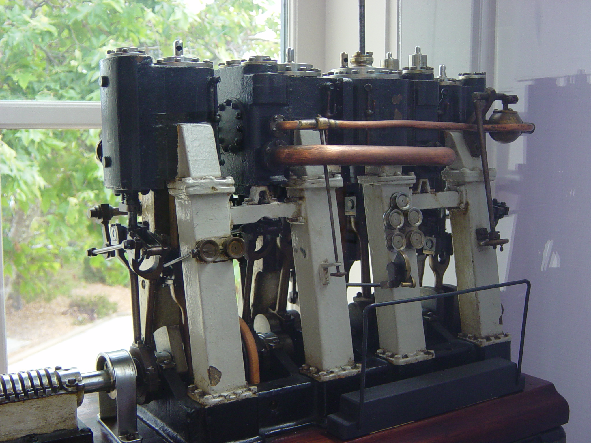 선박 증기 기관 분야에서는 19세기 말 이후 고압·중압·저압 실린더를 갖춘 3단 팽창 기관이 주류를 이루었다. 실린더 직경을 점차 키워가며 증기 압력 감소에 맞춰 효율적으로 동력을 얻는 방식이었다.[16] 스코틀랜드의 "닥터" 알렉산더 카네기 커크는 1874년 SS 프로폰티스호에 실험적으로 첫 3단 팽창 엔진을 장착했고, 1881년 스코틀랜드 클라이드사이드에서 건조된 SS 애버딘호에 개선된 엔진을 설치하여 영국과 극동 간 상업 운송에서 높은 출력과 경제성을 입증했다.[2][3] 최초로 3단 팽창 기관을 탑재한 군함은 클라이드사이드에서 건조된 스페인 군함 디스트로이어였으며, 영국 해군에서는 J. W. 리드가 설계한 엔진이 처음으로 사용되었다.[4][5] 이후 다른 해군 및 상업 선주들도 이 방식을 빠르게 채택했으며, 4단계로 팽창시키는 4단 팽창 엔진도 사용되었다. 올림픽급 여객선 (1912년)의 경우, 두 개의 3단 팽창 기관에서 나온 배기 증기를 이용하여 저압 증기 터빈을 구동, 중앙 프로펠러를 돌림으로써 복합 효과를 더욱 높였다. 이는 SS 로렌틱 (1908년)에서 처음 시도된 방식이었다.