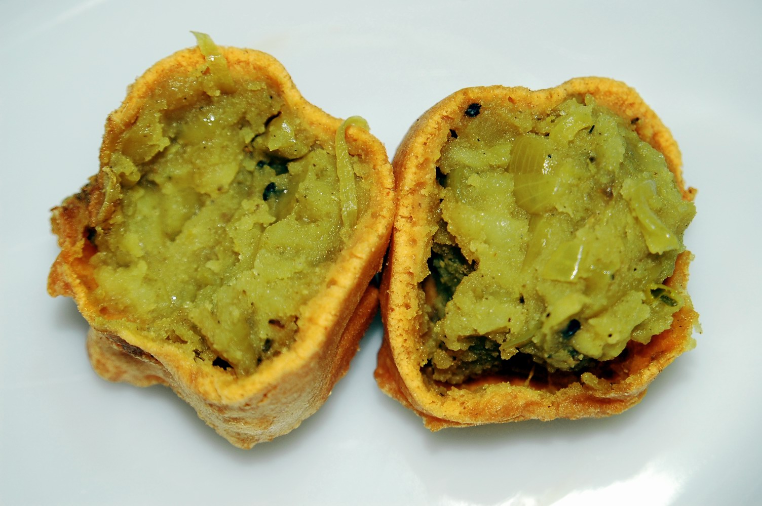 일반적으로 매운 본다는 감자 속을 만들어 병아리콩 가루 반죽에 담가 기름에 튀겨 만든다.