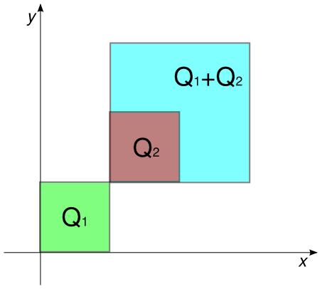 집합의 민코프스키 합: 정사각형 , 의 합집합 이다.