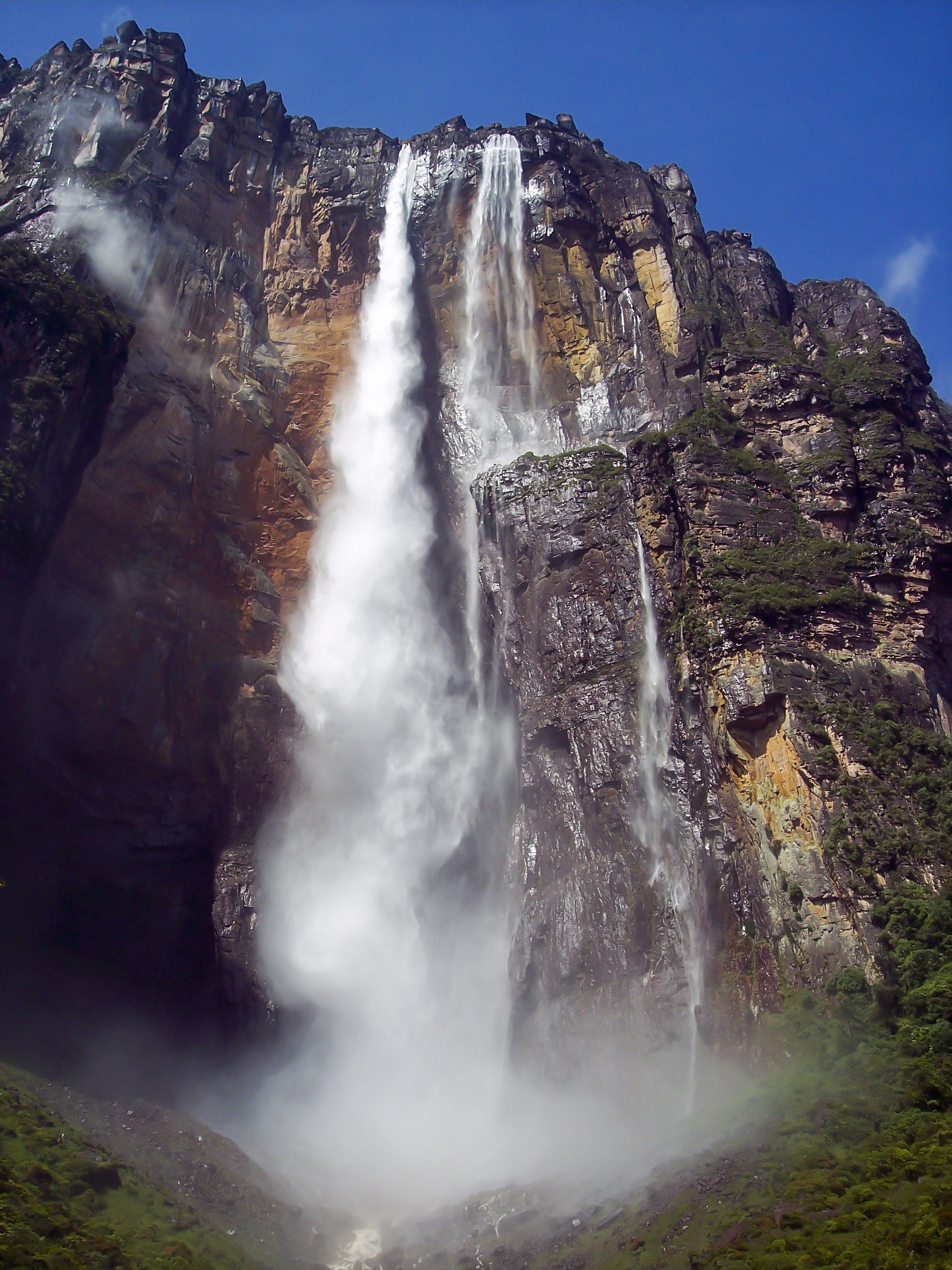 오리노코강 유역에 속하는 볼리바르주는 카로니강, 파라과강, 카우라강 등 주요 강들이 가이아나 순상지의 험준한 지형을 지나며 급류 계곡과 폭포를 형성한다. 특히, 카로니강은 이러한 지형 덕분에 강력한 수력 발전소 건설이 가능했으며, 구리 저수지와 시몬 볼리바르 수력 발전소(구 라울 레오니)는 베네수엘라의 중요한 발전 시설이다. 카로니강의 지류인 추룬강은 아우얀테푸이 고원에서 발원하여 세계에서 가장 높은 엔젤 폭포를 형성하며, 그 낙차는 936.60미터에 달한다.[1] 유루아리-쿠유니 강 유역은 볼리바르주에서 오리노코강 유역에 속하지 않는 예외적인 지역이다.3. 3. 기후