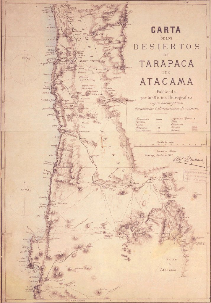 1884년 발파라이소 조약이 체결(1904년 최종 강화)되어 아타카마 사막 지방을 칠레에 할양하면서 볼리비아는 내륙국이 되었다.[95]