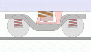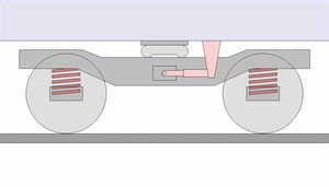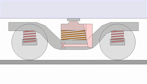 • 차체 중량(상하방향 하중): 차체 - 센터 플레이트·센터 피봇 - 상부 스윙 볼스터 - 볼스터 스프링 - 하부 스윙 볼스터 - 행거 링크 - 대차 프레임 - 축스프링