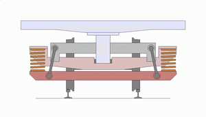 스윙 볼스터 가이드는 구조가 간단하고 저렴하지만, 마모로 인해 대차 프레임과 상부 스윙 볼스터 사이에 틈이 생겨 진동을 일으키는 결점이 있다. 스윙행거 방식 대차는 부품 수가 많고 자유도가 높아 복잡한 흔들림이 발생하기 쉽다(그림2-2). 이로 인해 스윙 볼스터 가이드가 심하게 마모되어 전후방향으로 덜컹거림이 발생하고, 흔들림이 더욱 커지는 악순환이 발생하기 쉽다.