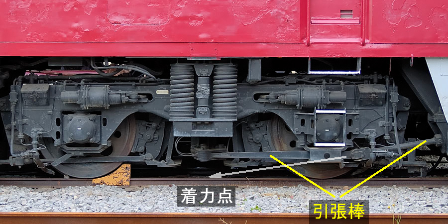 • 견인력(전후방향 하중): 차체 - 센터 피봇 - 볼스터 - 볼스터 앵커 - 대차 프레임 - 저널박스 지지 장치