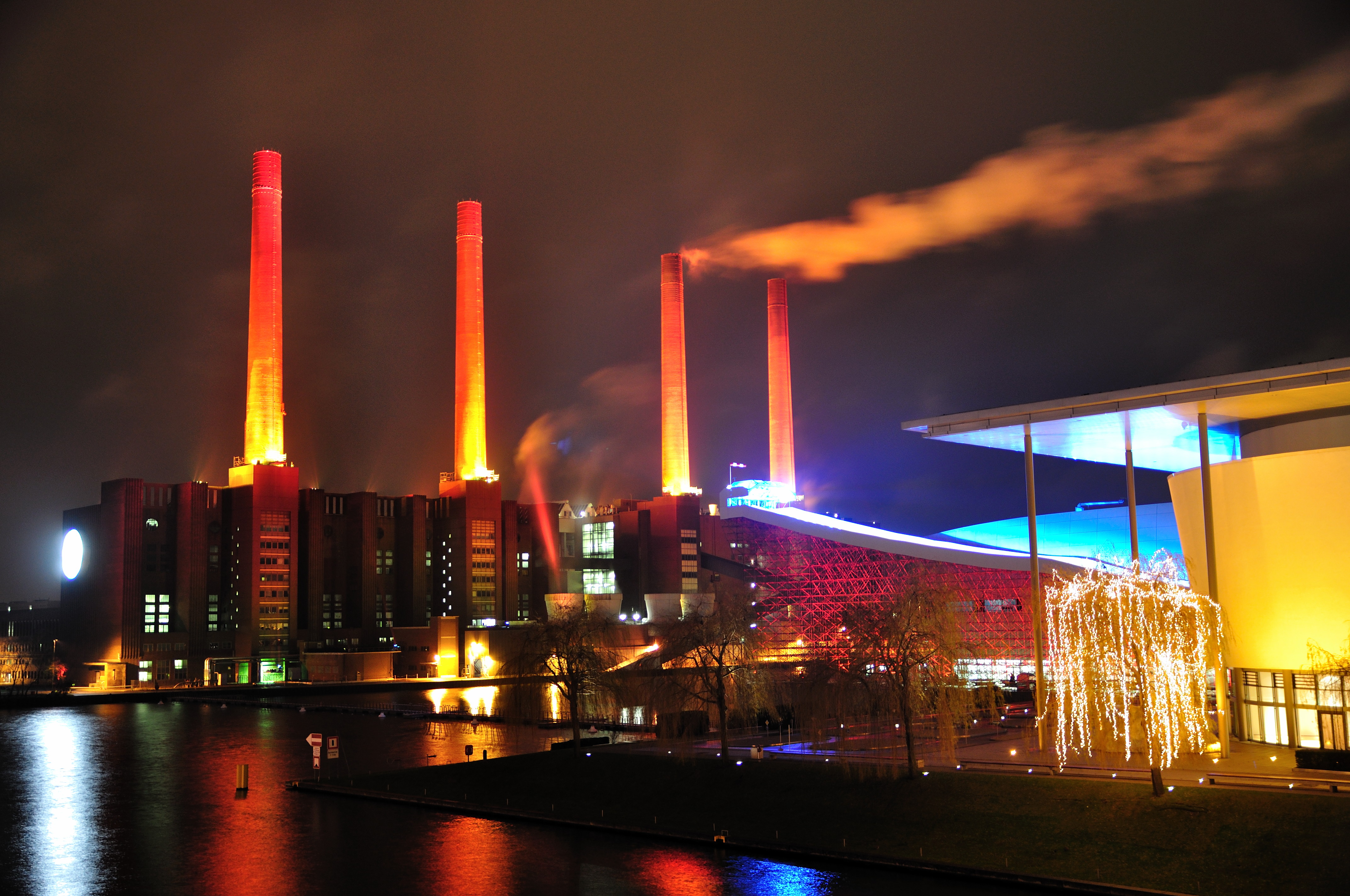 Water show Wolfsburg: A truly unique experience is provided by the world's largest mobile water-fountain show with its up to 70 meter high fountains. The show is being staged every night for a period of four weeks. Visitors can prepare themselves for an unforgettable spectacle. Every year, the show is themed and staged differently, and accompanied by a lavish play of colours and a laser show.