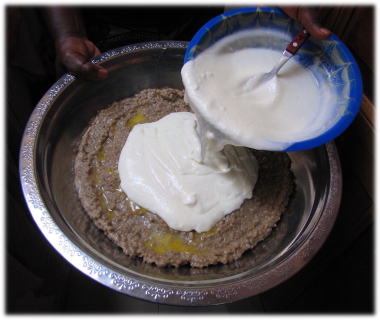 많은 문화권에서 음식과 음료를 공동 그릇이나 컵에 담아 함께 먹는다.[3] 말리의 반디아가라는 "큰 식사 그릇"을 의미하며, 공동 식기에서 음식을 제공하는 것을 지칭한다. 짐바브웨에서는 사자를 전통적으로 공동 식기에서 먹으며, 이 전통은 주로 시골 지역의 일부 가족들이 여전히 유지하고 있다. 라크는 일반적으로 굴린 기장 가루 펠릿(아라/아로우)으로 만든 인기 있는 삶은 죽으로, 일반적으로 달콤한 발효유를 얹어 제공된다. 그것은 보통 세네갈에서 공동 그릇이나 접시에 담겨 제공된다.