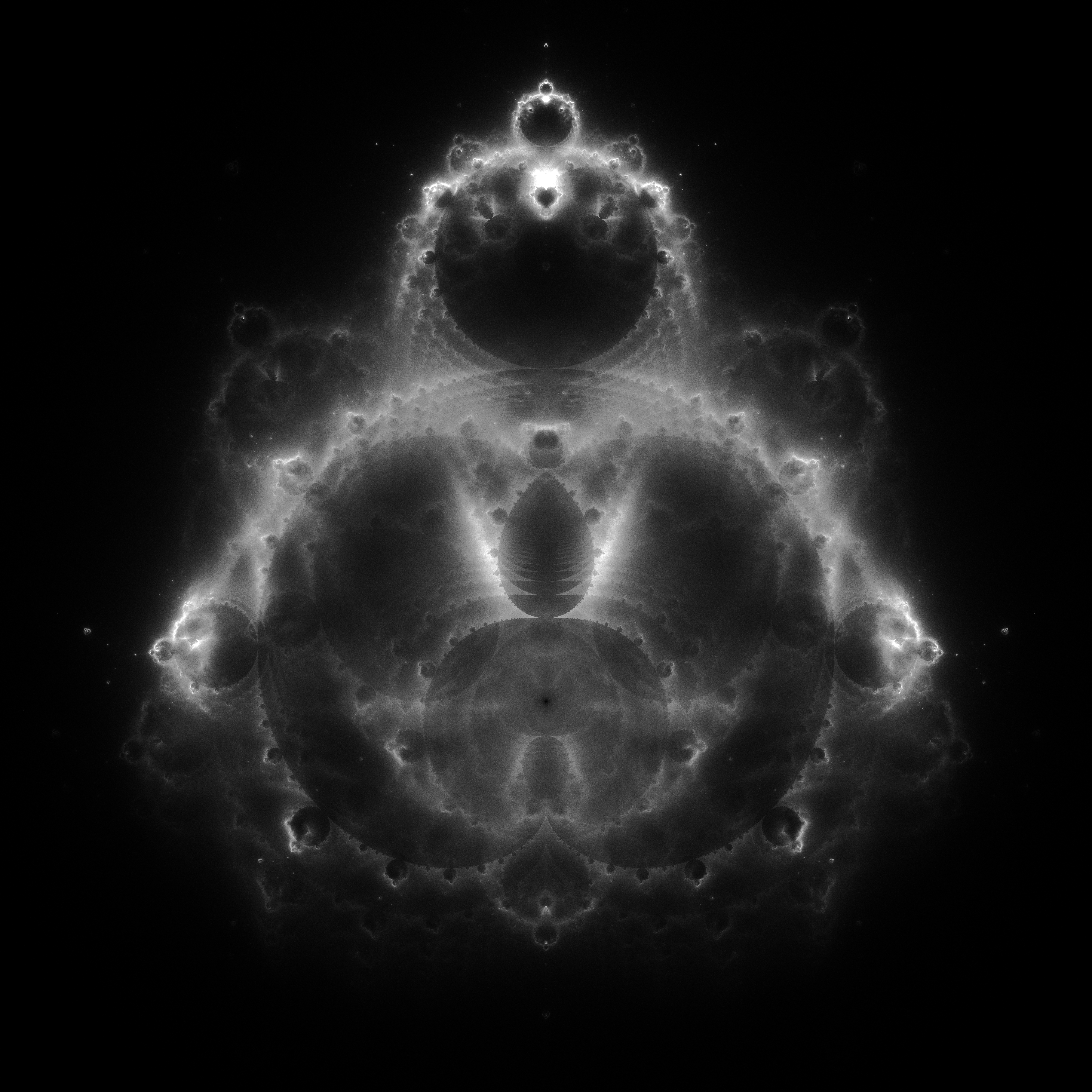 정의 | 점화 $z_{k+1} = z_k^2 + c$가 발산하는 복소 평면의 점 $c$의 궤적을 히스토그램으로 그린 것 |