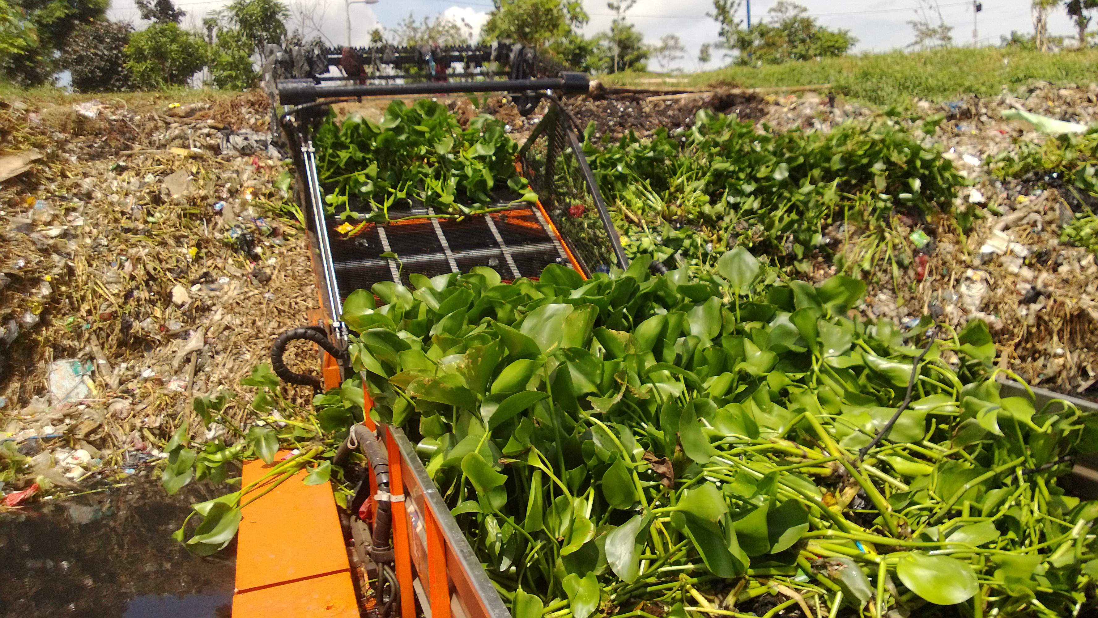 수생 식물 수확기, 준설선, 식물 파쇄기 등 기계적인 방법을 사용하여 부레옥잠을 제거할 수 있다.[64][65] 기계적 제거는 식물 증식에 대한 최선의 단기적인 해결책으로 간주된다.