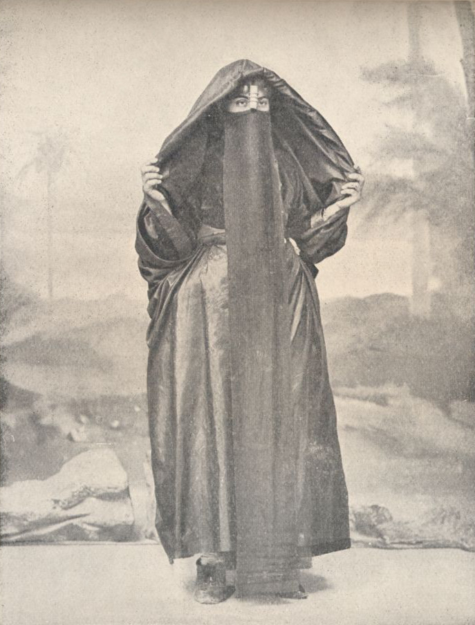 얼굴 가리개는 원래 비잔틴 제국 특정 계층 여성들의 복장의 일부였다.[23] 이슬람 이전 시대의 비잔틴 미술은 베일을 쓴 머리나 덮인 머리카락을 가진 여성들을 묘사하지만, 베일을 쓴 얼굴을 한 여성들을 묘사하지는 않는다. 스트라보는 일부 페르시아 여성들이 얼굴을 가렸다고 언급했으며,[24] 테르툴리아누스는 "아라비아"의 일부 "이교도" 여성들이 얼굴 전체를 덮는 베일을 착용했다고 언급했다.[25] 알렉산드리아의 클레멘트는 당시의 얼굴 가리개 사용을 칭찬했다.[26][27] 성경에는 타마르와 리브가가 얼굴 베일을 사용했다는 언급이 있다.[28][29][30][31] 이러한 자료들은 페르시아, 이집트, 아라비아, 고대 이스라엘의 일부 여성들이 이슬람 이전부터 얼굴을 가렸다는 것을 보여준다.