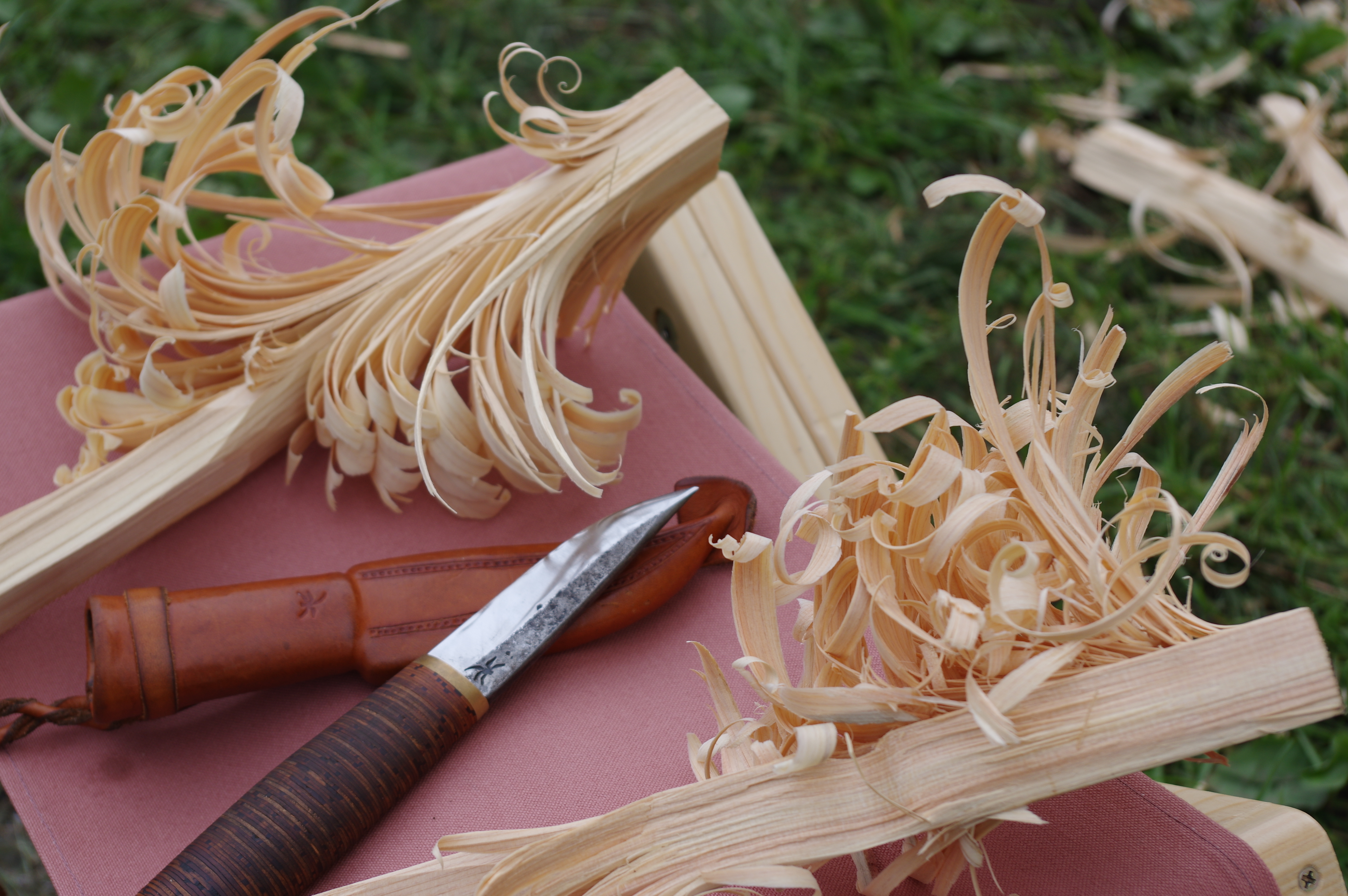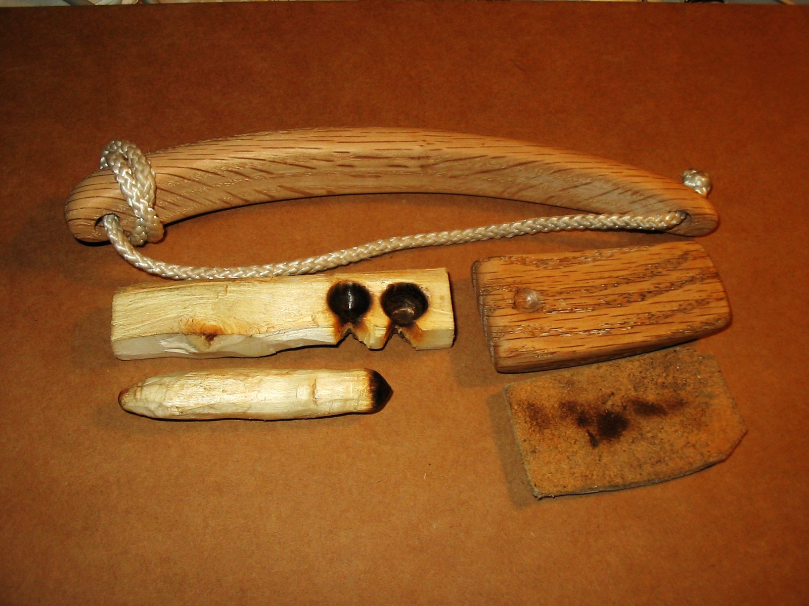 - 불쏘시개는 식물성 건조 섬유질(예: 삼 끈을 풀어놓은 것, 부들 씨앗, 억새 씨앗, 마른 풀 등)이 선호되지만, 장작으로 사용할 나무를 나이프로 페더 스틱이나 더스트로 만든 것으로도 대체 가능하다.[1]