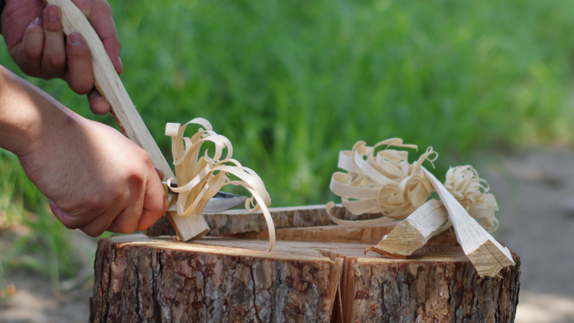 - 불쏘시개로 쓸 작은 나무 조각은 마른 잔가지 등 자연 상태 그대로 불이 붙기 쉬운 가늘고 작은 나무를 채집하거나, 굵은 장작을 나이프 등으로 가공하여 확보한다. 대표적인 예로 페더 스틱이 있다.[1]
