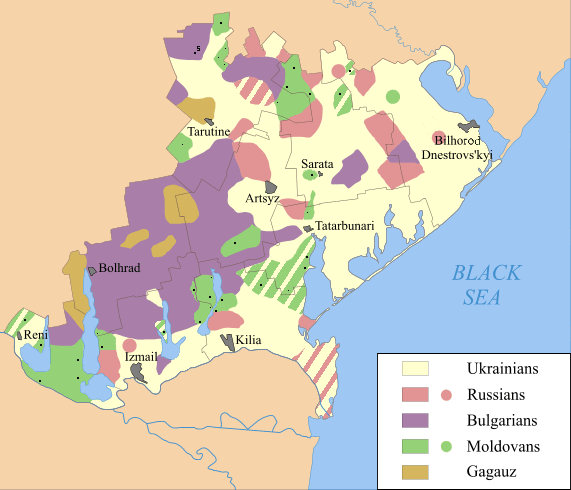 불가리아인은 아르치즈 (39%), 볼흐라드 (61%), 타루티네 (38%) 라이온 (2020년 이전)에서 가장 큰 민족 집단이며, 몰도바인은 레니 라이온 (50%), 러시아인은 이즈마일 시 (44%), 우크라이나인은 킬리아 (45%), 타타르부나리 (71%), 사라타 (44%), 빌호로드 드니스트로우스키이 (82%) 라이온 및 빌호로드 드니스트로우스키이 시 (63%)에서 가장 큰 민족 집단이다.