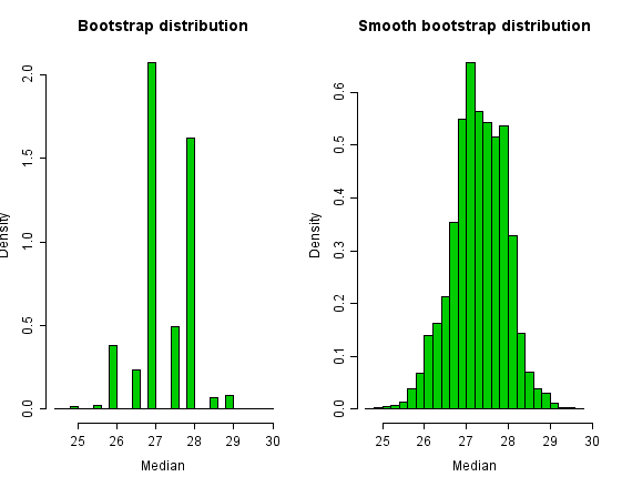 평활 부트스트랩 | 부트스트랩 표본에 임의의 노이즈를 추가 |