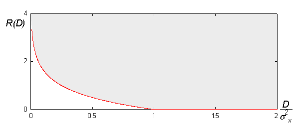 이 부호율-왜곡 함수는 가우시안 무기억 소스에 대해서만 유효하다. 가우시안 소스는 인코딩하기에 가장 "어려운" 소스로 알려져 있다. 주어진 평균 제곱 오차에 대해, 가장 많은 비트 수를 필요로 한다.