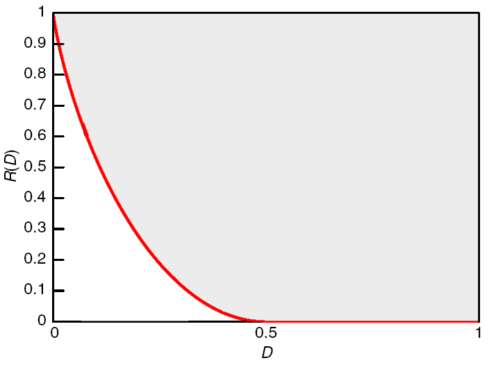 해밍 왜곡을 갖는 베르누이 확률 변수의 율-왜곡 함수는 다음과 같다.