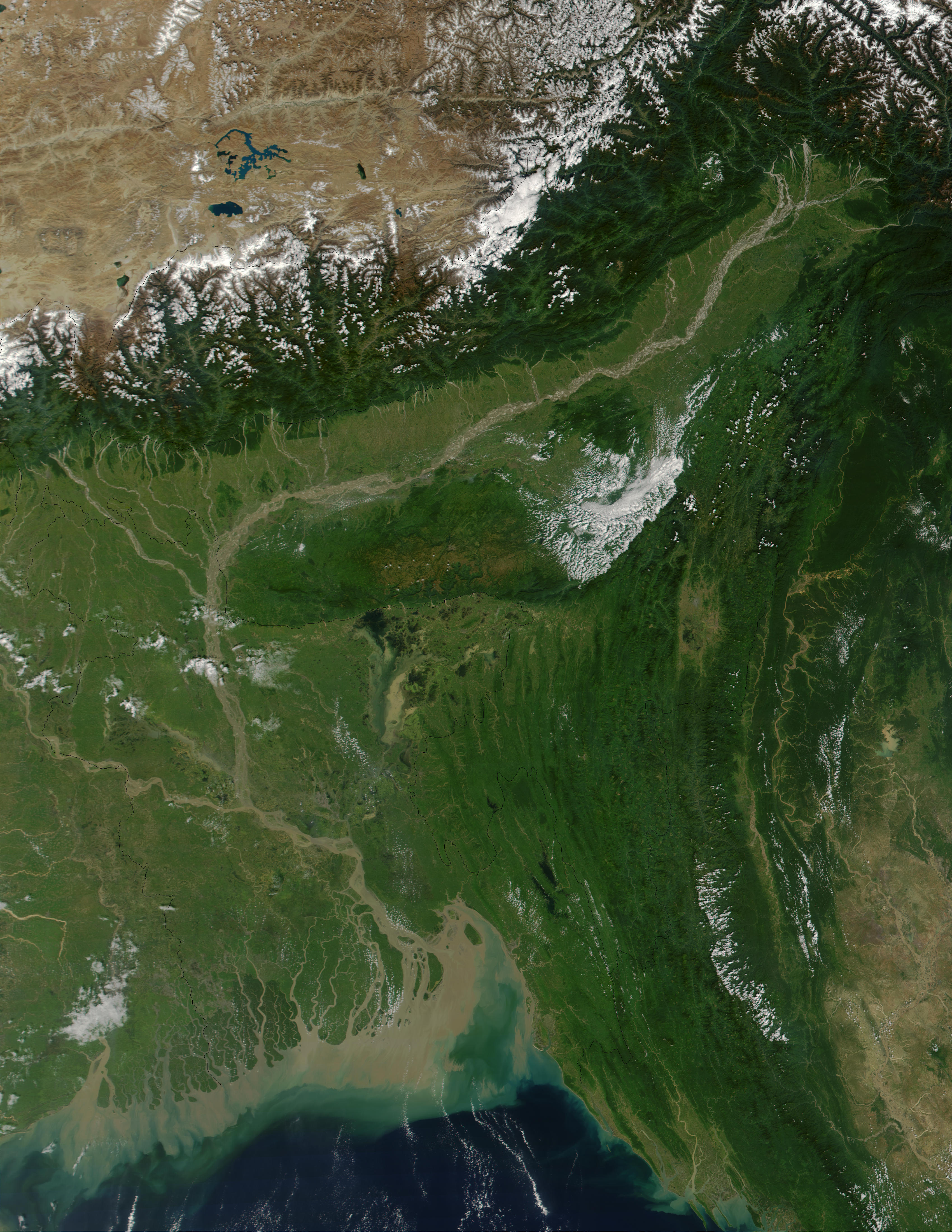 이 지역은 브라마푸트라-바락 강 시스템과 그 지류로 덮여 있다. 높은 강우량(평균 10000mm 이상)은 생태계 문제, 높은 지진 활동 및 홍수를 야기한다.[51][52]
