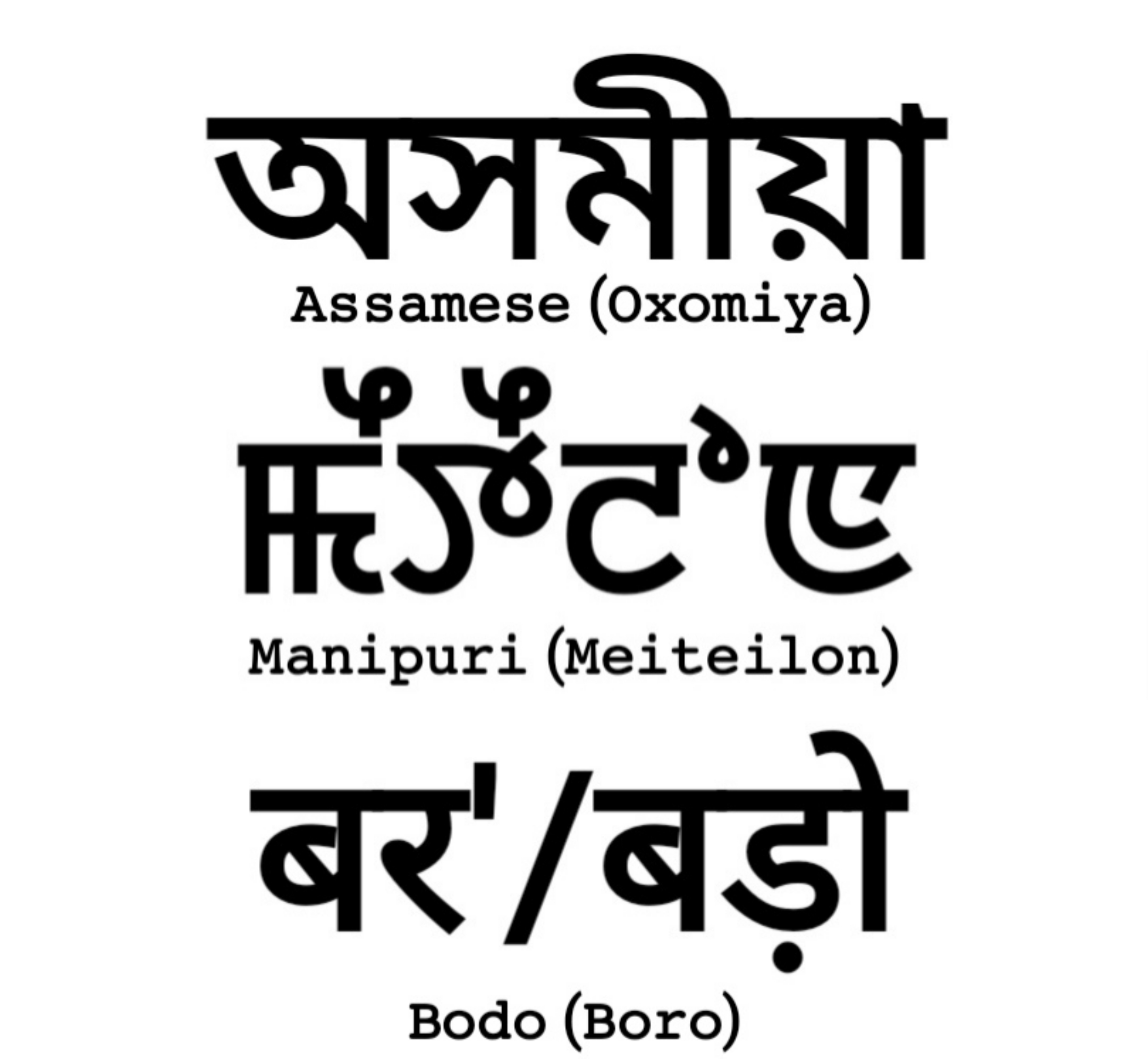 지정 언어 | 아삼어 벵골어 보도어 메이테이어 (마니푸리어) 네팔어 |