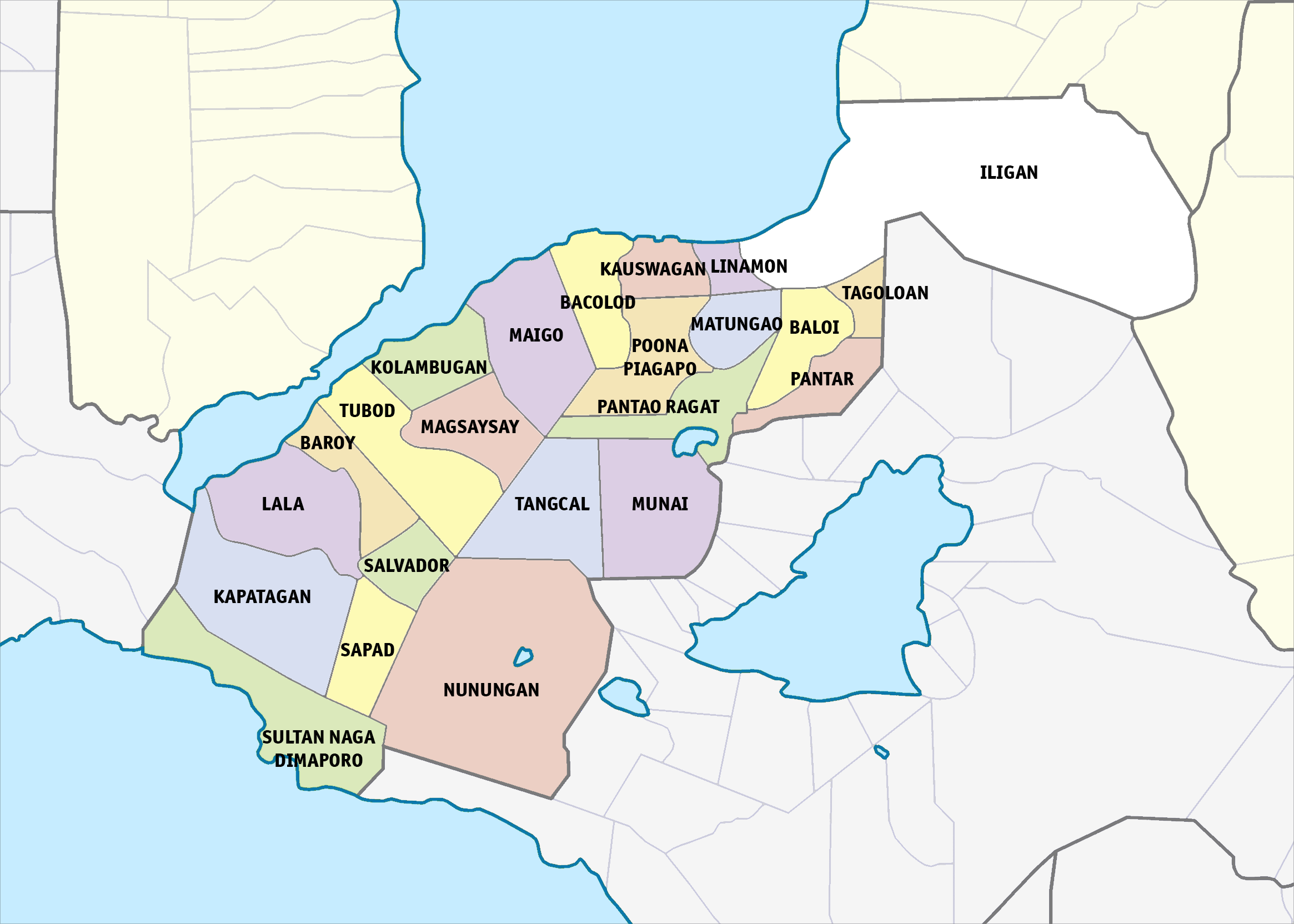 라나오 주는 1914년부터 1959년까지 존재했다. 당시 이 주는 발로이, 카우스와간, 바콜로드, 마이고, 콜람부간, 투보드, 바로이, 랄라, 카파타간, 카로마탄 자치구와, 일반 자치구로 전환된 마퉁가오, 판타오 라갓, 무나이, 탕칼, 누눙간 자치구로 구성되어 있었다. 일리간 시는 스페인 시대에 수천 명의 비사얀 이민자들이 건설했으며 100명의 스페인 군인들이 주둔했다.[4]