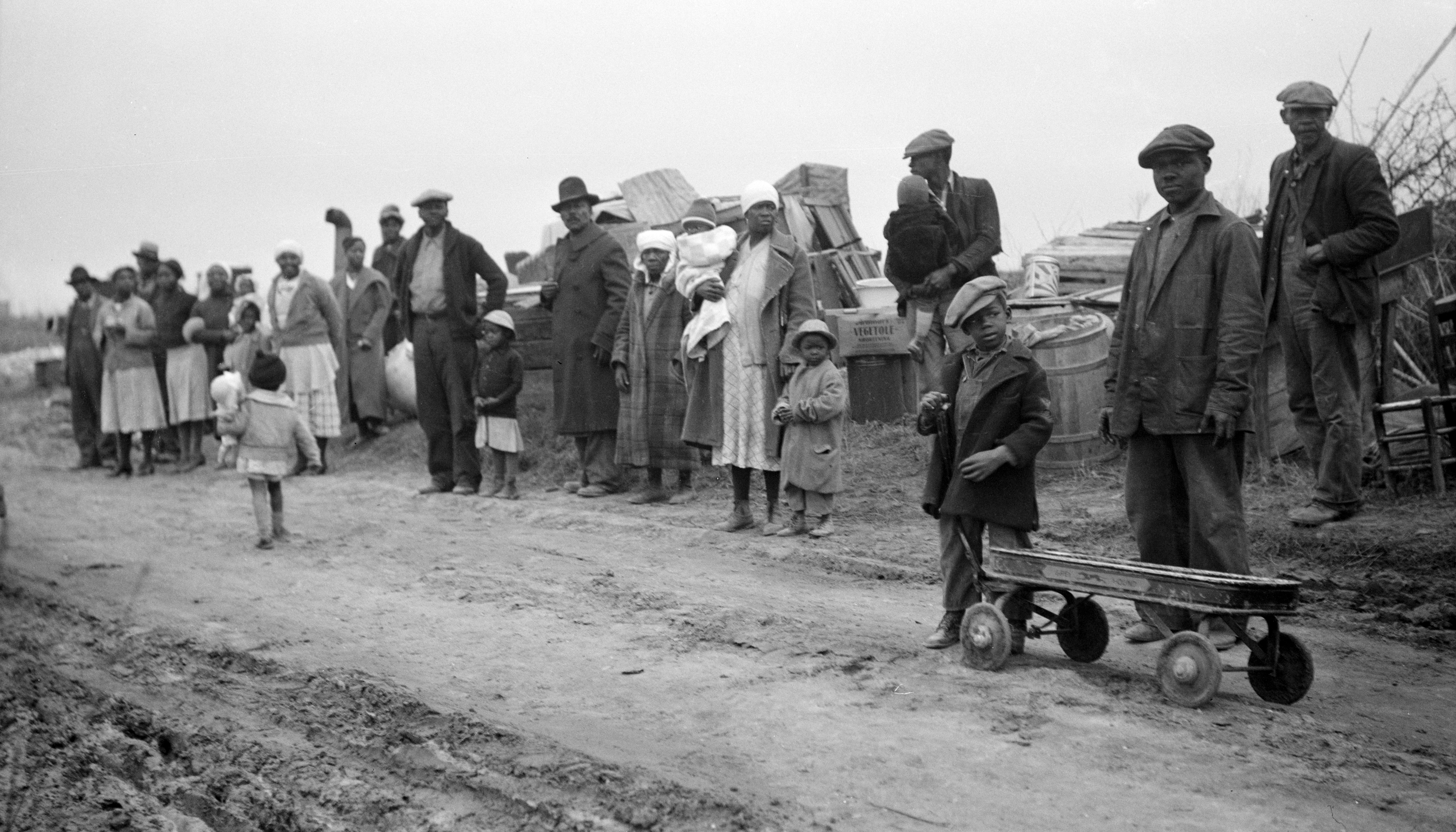 남부 소작농 연합의 회원 자격으로 인해 퇴거당한 후 길가에 앉아있는 소작농들 (1936년 1월)