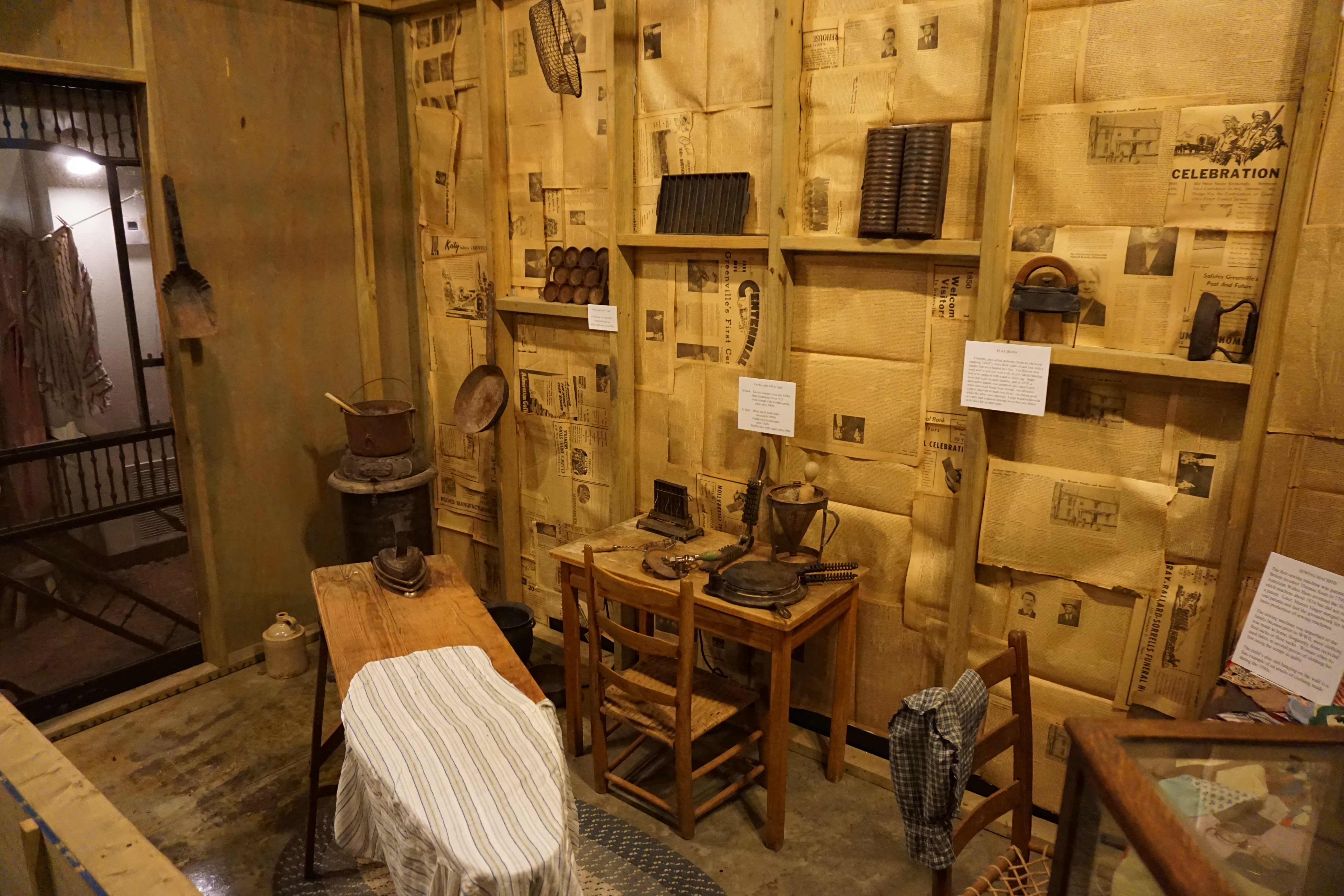 텍사스주 오디 머피 미국 면화 박물관(Audie Murphy American Cotton Museum)에 전시된 20세기 초 텍사스 소작농의 집 디오라마, 그린빌, 2015