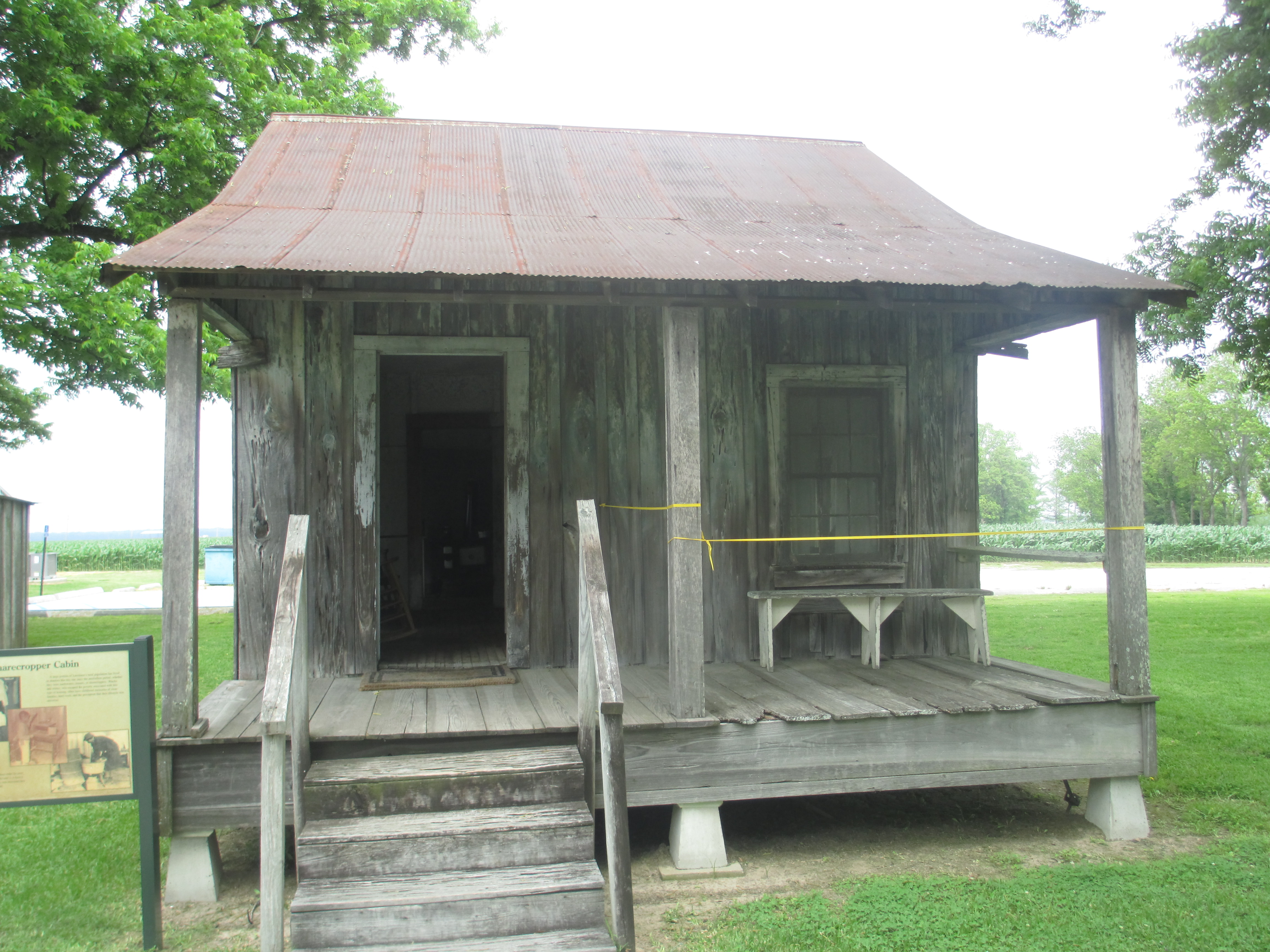 루이지애나 주립 면화 박물관(Louisiana State Cotton Museum)에 전시된 소작농의 오두막, 레이크 프로비던스, 루이지애나 (2013년 사진)