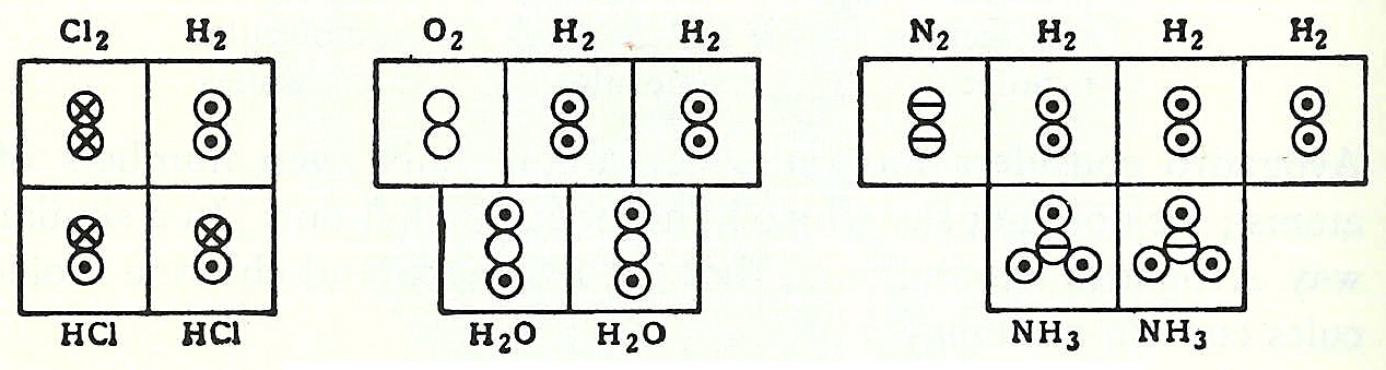 아메데오 아보가드로는 "분자"라는 단어를 만들었으며,[14] 1833년 프랑스 화학자 마르크 앙투안 오귀스트 고당은 "부피 도표"를 사용하여 원자량에 관한 아보가드로의 가설을 설명했다.[16]