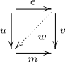 {\scriptstyle e}\downarrow&{\scriptstyle\exists! h}\nearrow&\downarrow\scriptstyle m\\